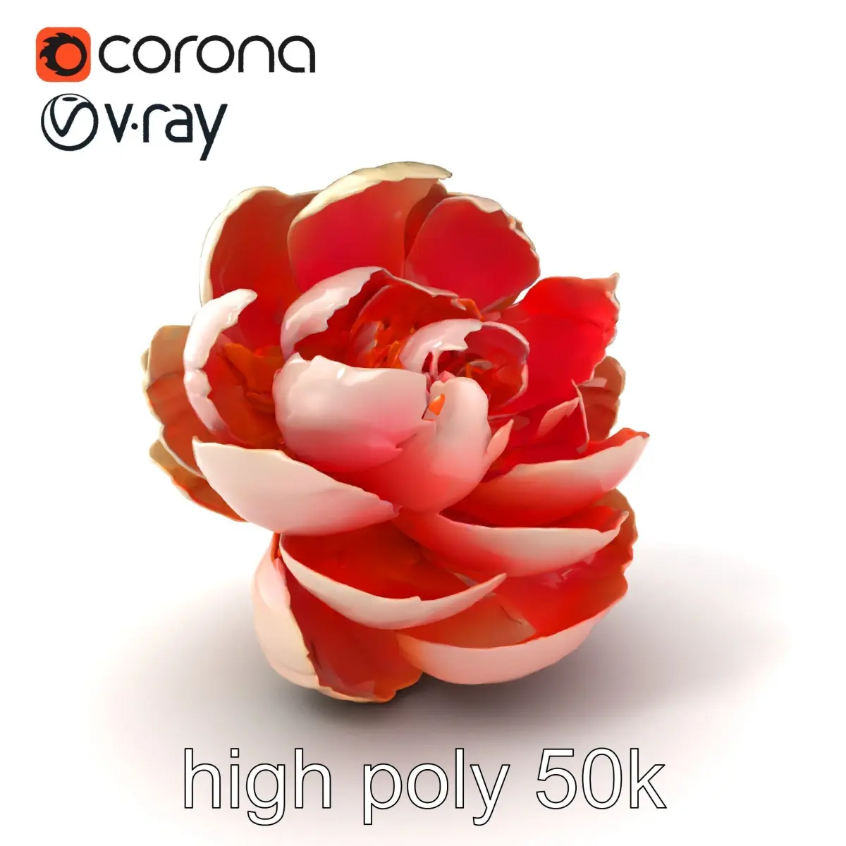 This Bicolor Peony model, with petals transitioning harmoniously from white to pink, is perfect for use in floral arrangement visualizations, virtual gardens, or decoration scenes in games.
