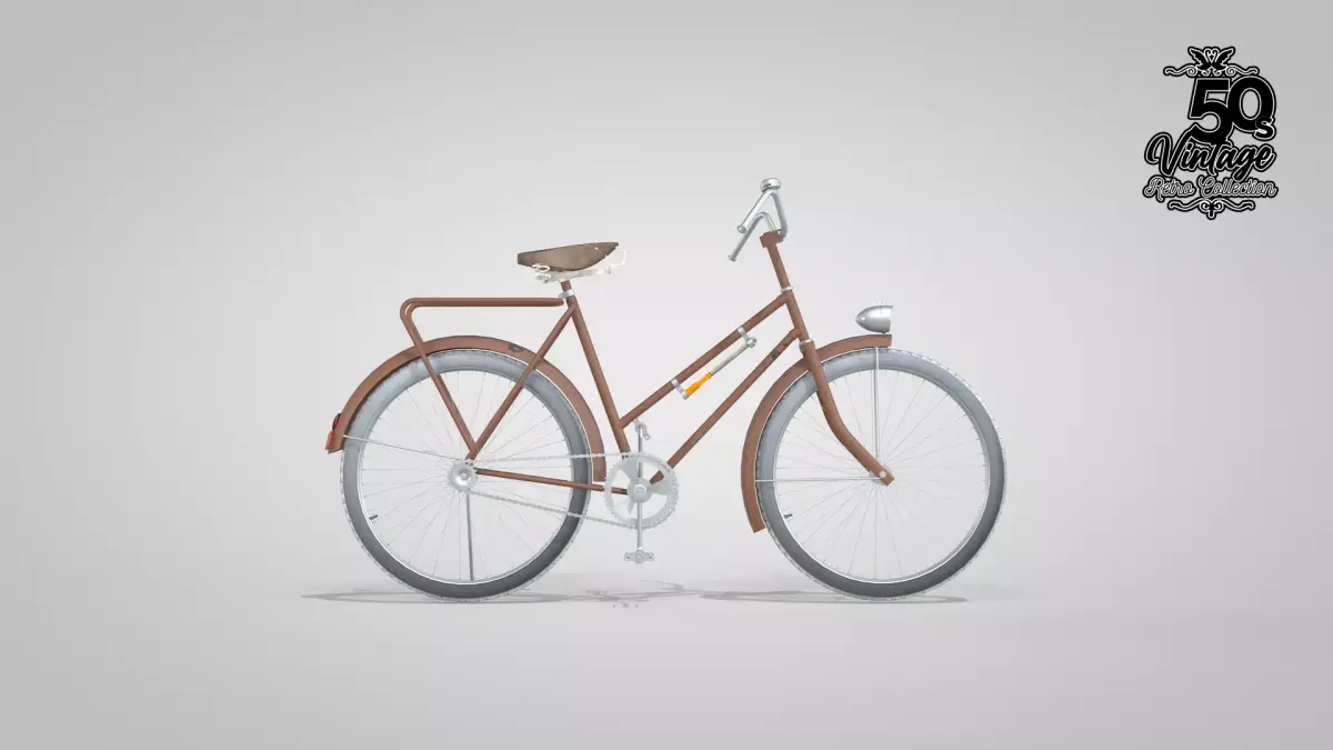 Original 1950s bicycle, made in Cinema 4D with polygons and exported to dae, fbx, obj, blend, and glb files.The textures are mostly 2k PBR UV mapping, only very small parts like the chain and screw are 1024.This work took approximately 120 hours, with many details.The model includes several period accessories such as an air pump, horn, license plate, kickstand, headlight, etc.I hope you like it and that it is useful in your work.Thank you for visiting, renatodalle