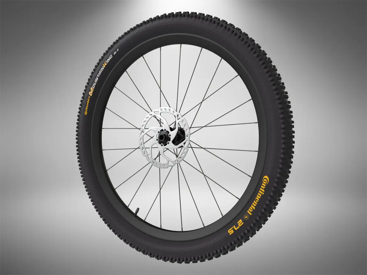 Bicycle complete wheel with disc brake and hub.