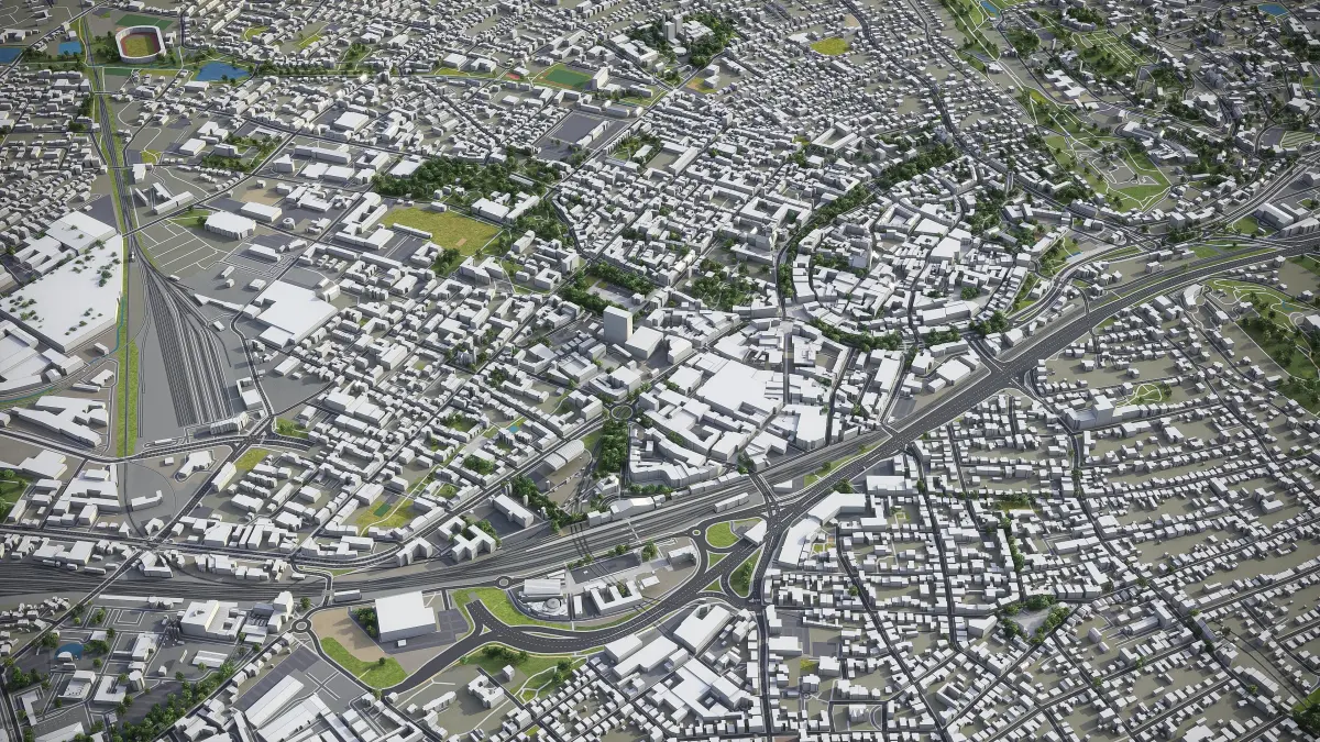 This is exact and accurate to scale 3D city model of Bielefeld - Detmold - Herford - Gutersloh and its surrounding area based on GIS data (January 2020)
