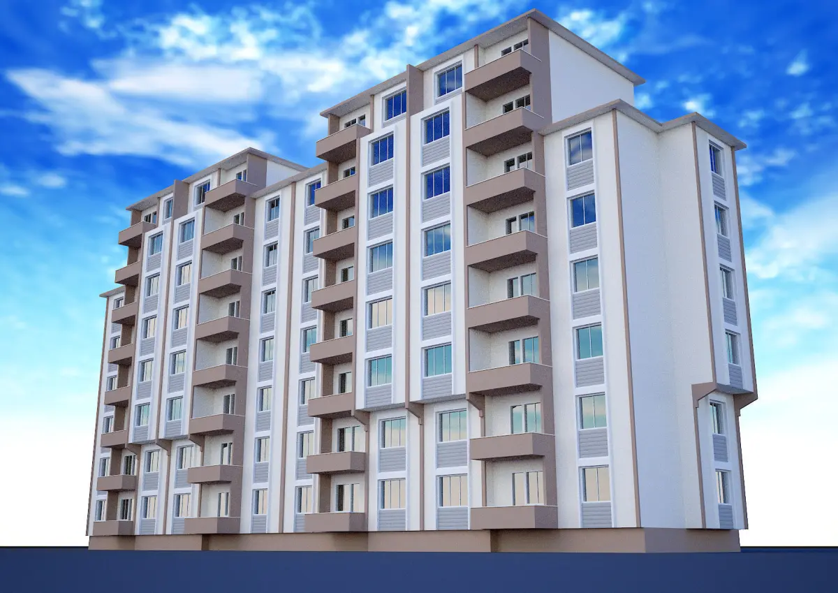 big building 3d model. 3ds amx was created in 2015. building with jamb decorationThere are 3 fronts.