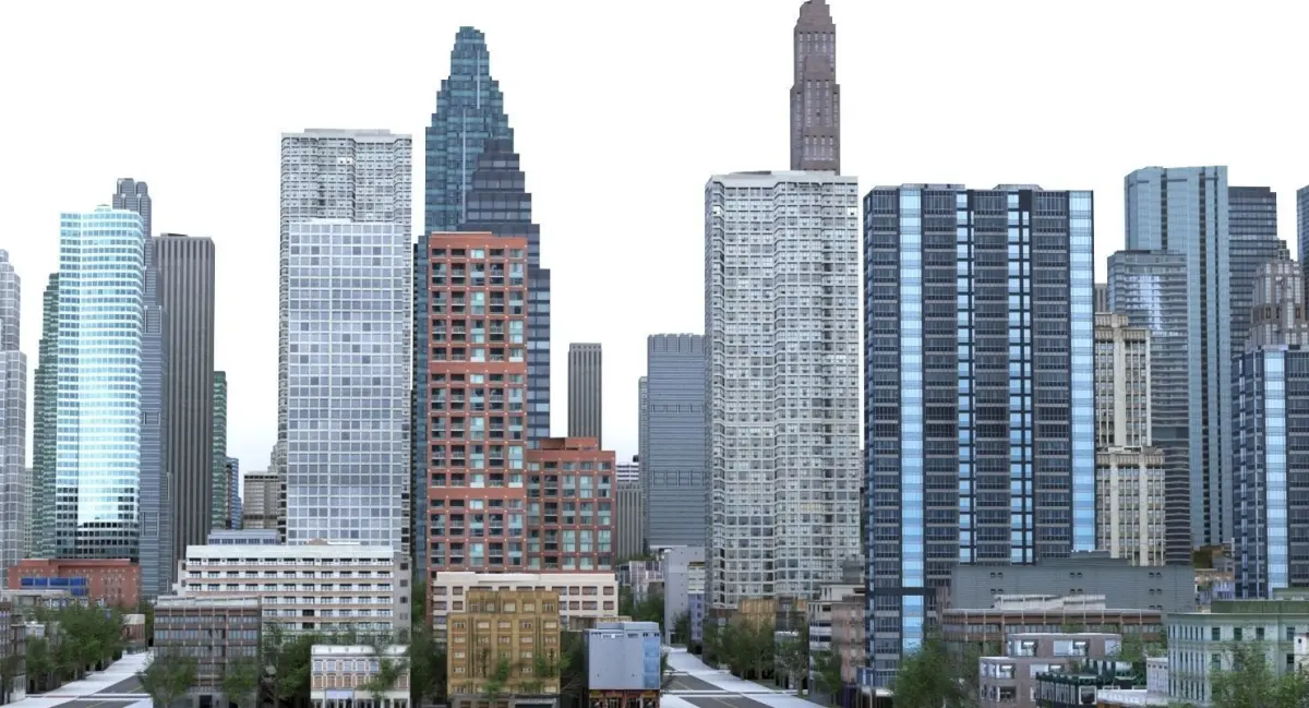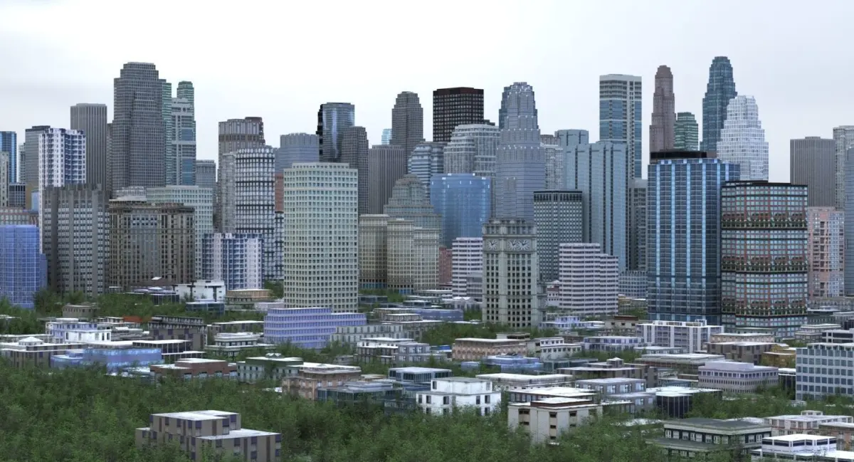 This is fully complete Cityscape scene. With Highrise, office and parks