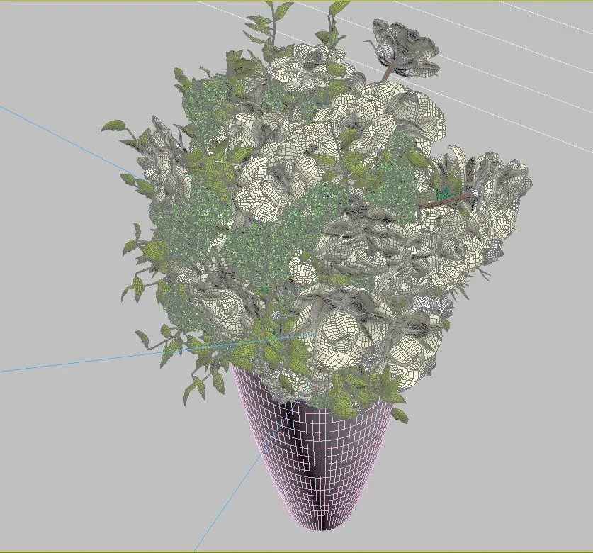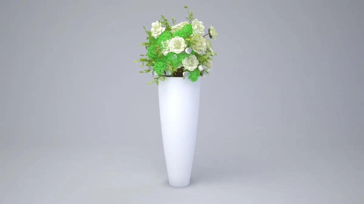 Big Flower Pot with Flower Bouquet 3D model