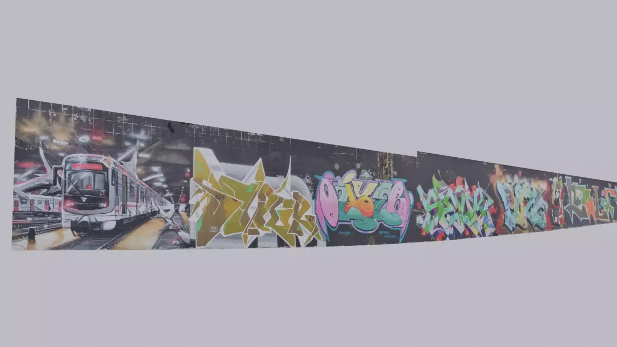 This is 3D model of wall covered by graffiti.