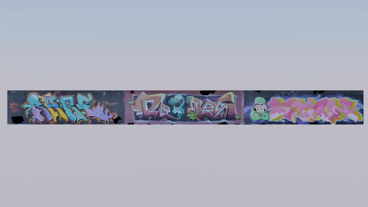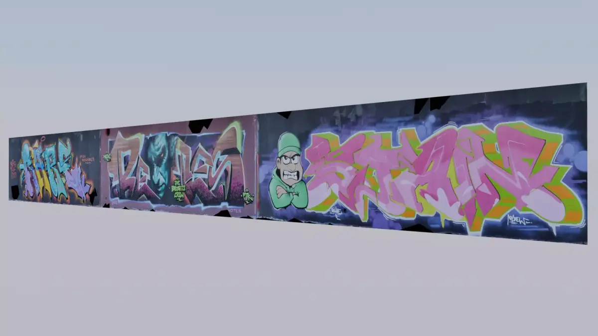 This is 3D model of wall covered by graffiti.