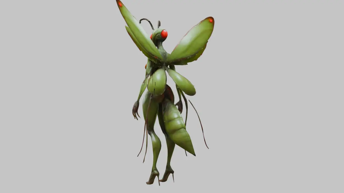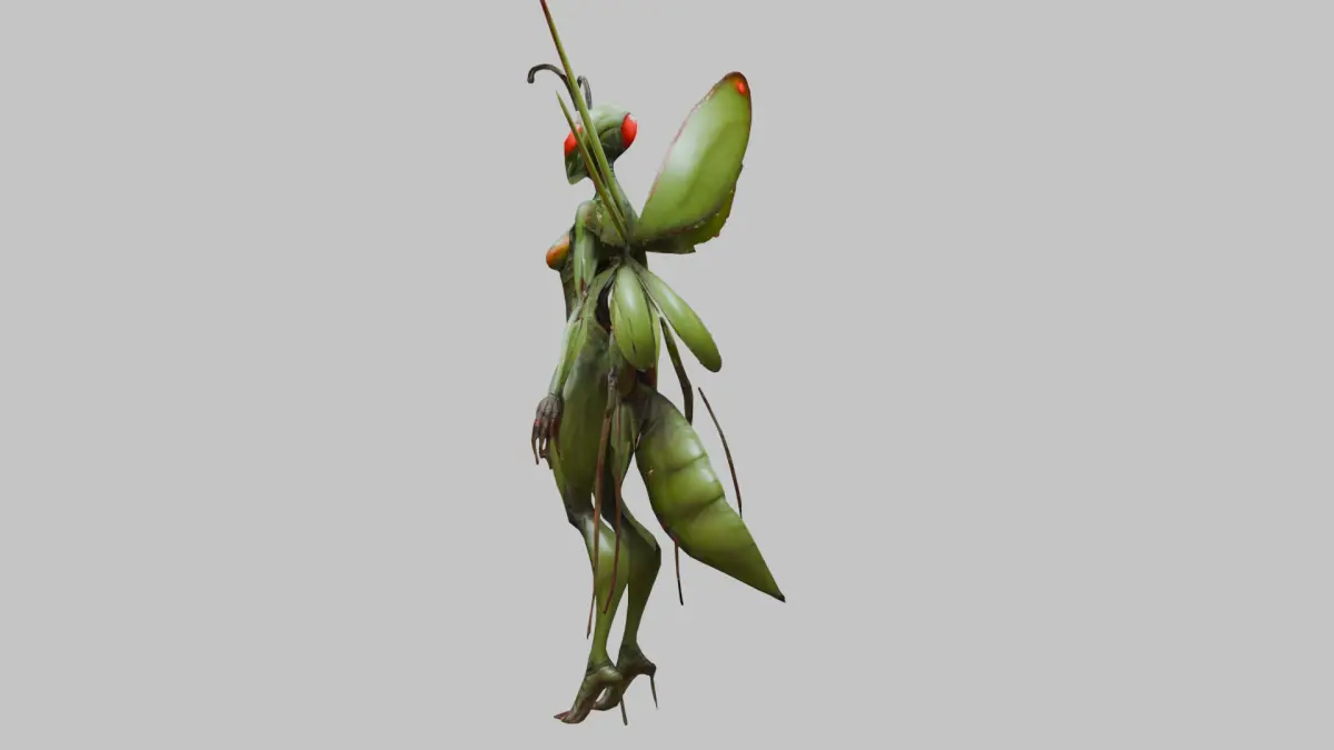 - This character is a unique, stylized interpretation of an insectoid humanoid mantis, blending alien and horror elements with a modern low-poly art style.