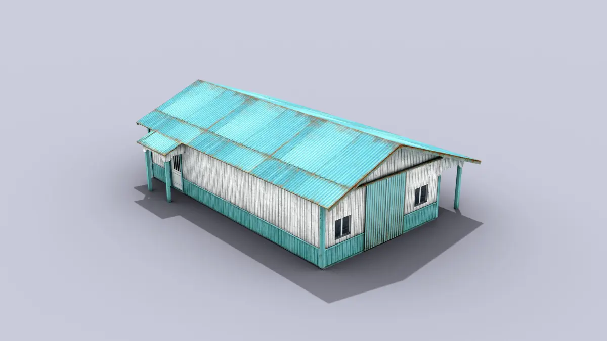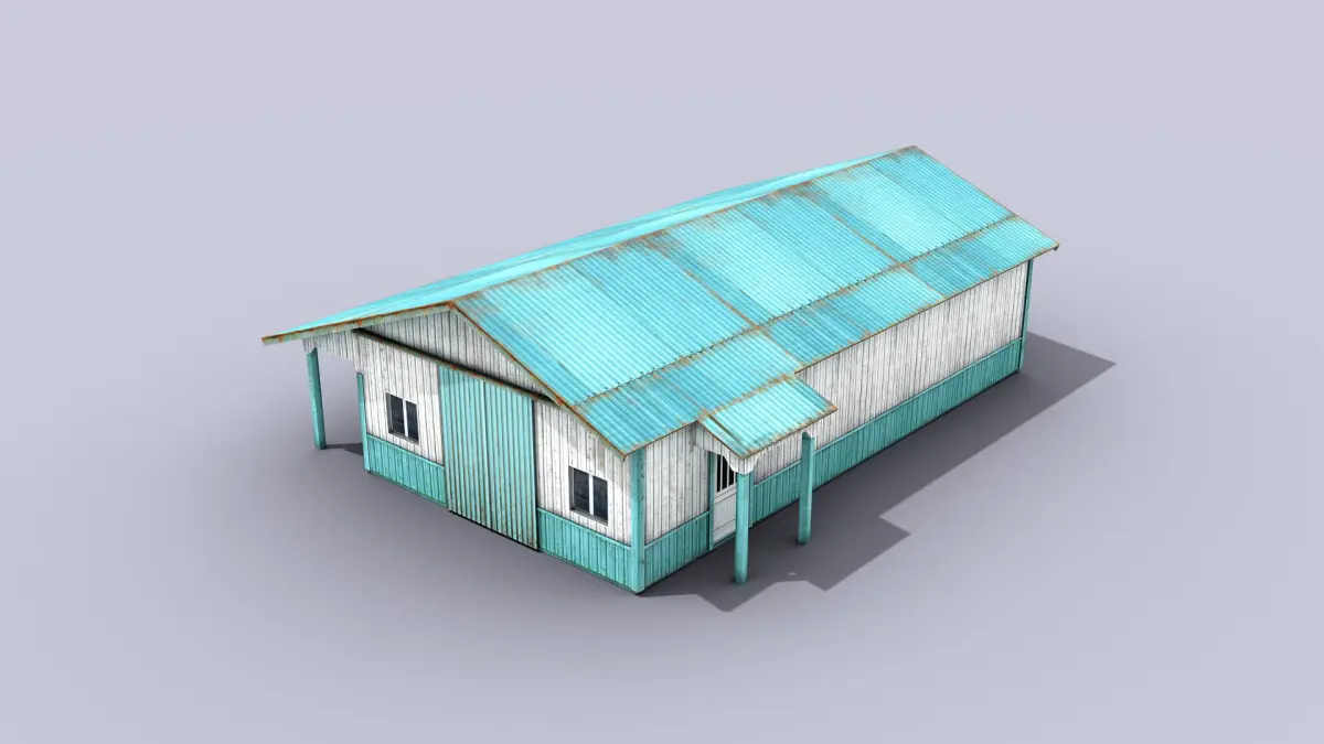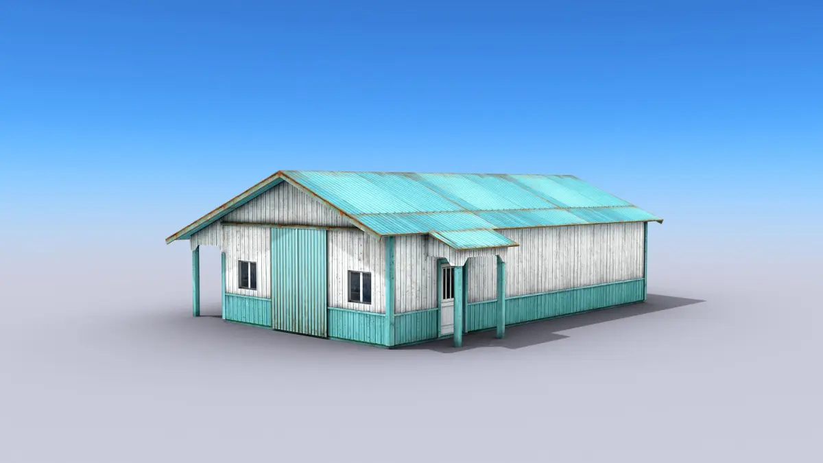 High-quality low-poly 3D model of Big Metal Warehouse.