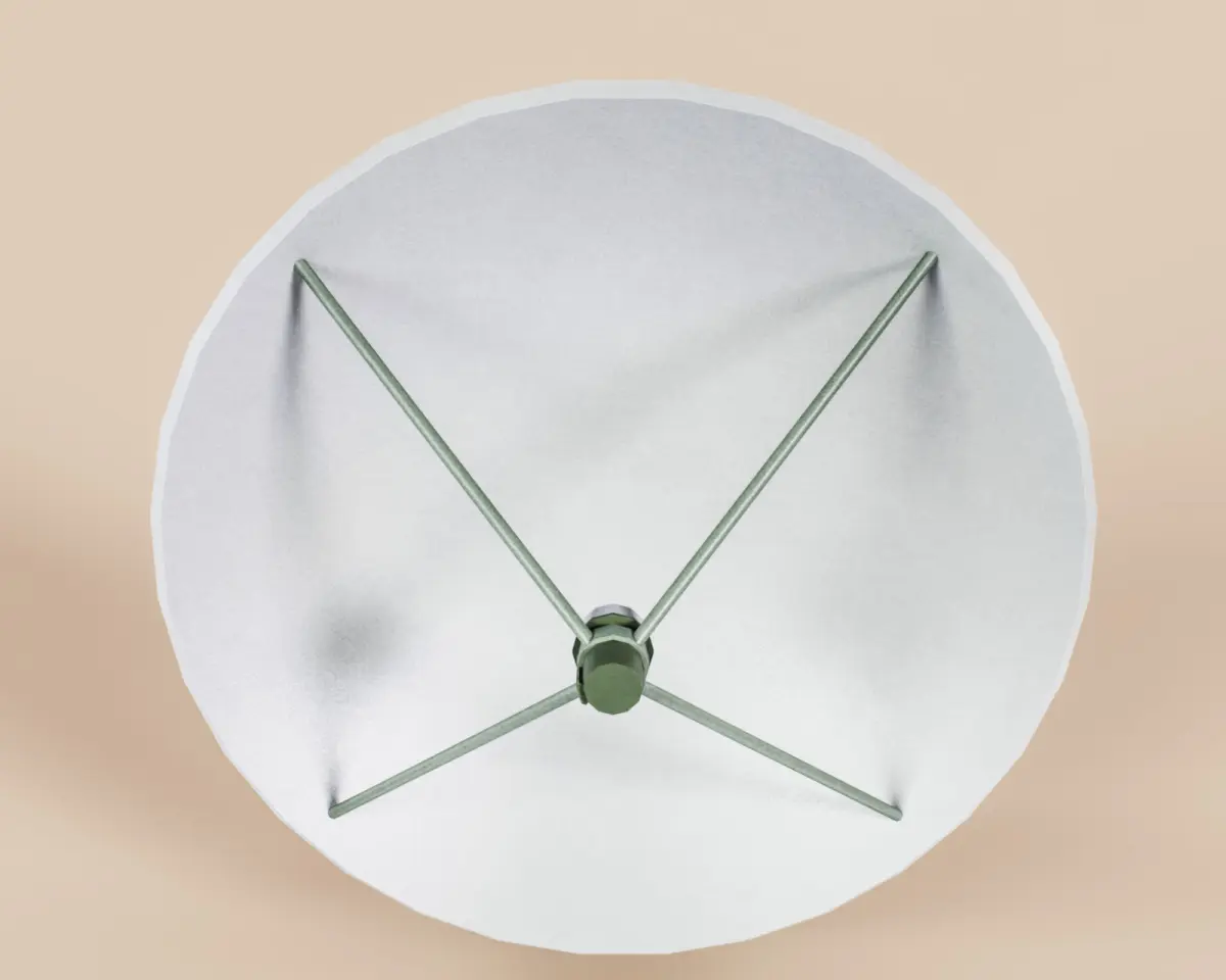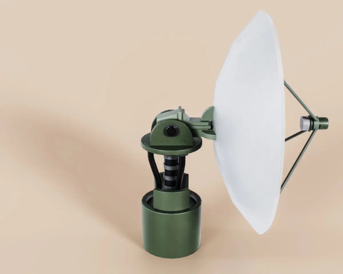 Realistic game-ready low-poly 3D model with clean topology. Composed of 3 moving parts: satellite base, satellite rotator, satellite dish.