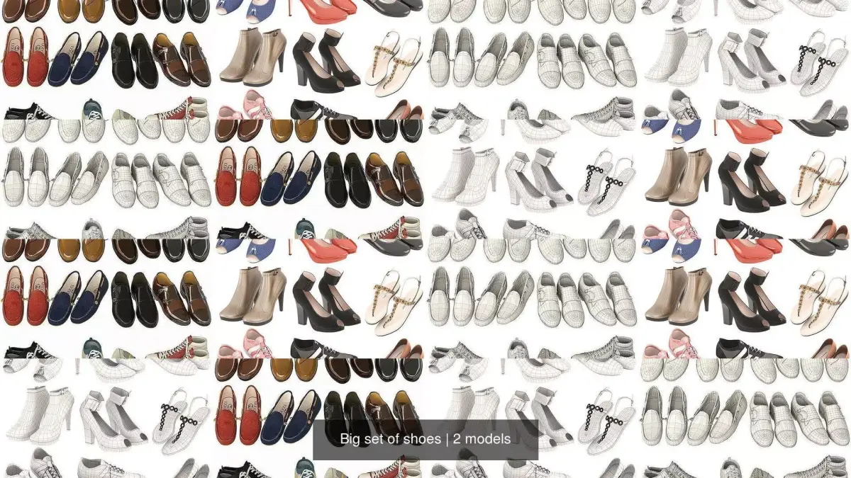 Large shoe collection. In the set: men's shoes, women's shoes, classic shoes, sports shoes.