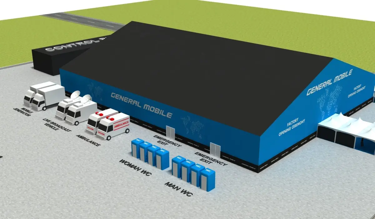Info desk , stage , bar chair , mobile WC , little tent , camera , podium , chair setup , entry banner , truss and light systems etc.