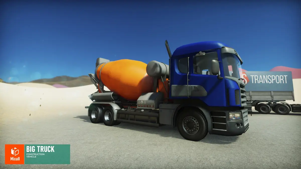 Mixall studio presents a good solution for your games, VR projects and simulators: Big truck - construction vehicle. Big Truck pack is built with great attention to details and realistic proportions with correct geometry. Textures are as detailed as possible and made with the greatest care.** Key Features **trucks with separated details optimized for gamesdetailed cockpit interior6 unique trailerslong and short chassis types** Assets **Truck: Big Truck, Big Truck Short.Trailer: Cement Mixer Truck, Flatbed Truck, Garbage Truck, Tanker Truck, Trailer Truck.Other: Garbage Hooper, Tent Truck.
