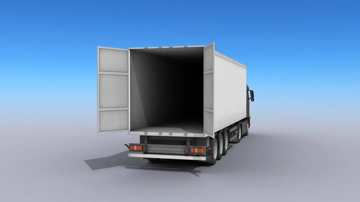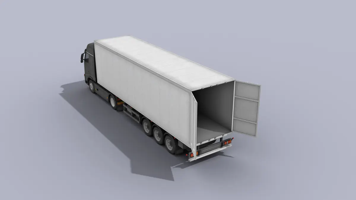 High-quality low-poly 3D model of Big Truck with Trailer. The interior part is also modeled and the trailer doors are openable.