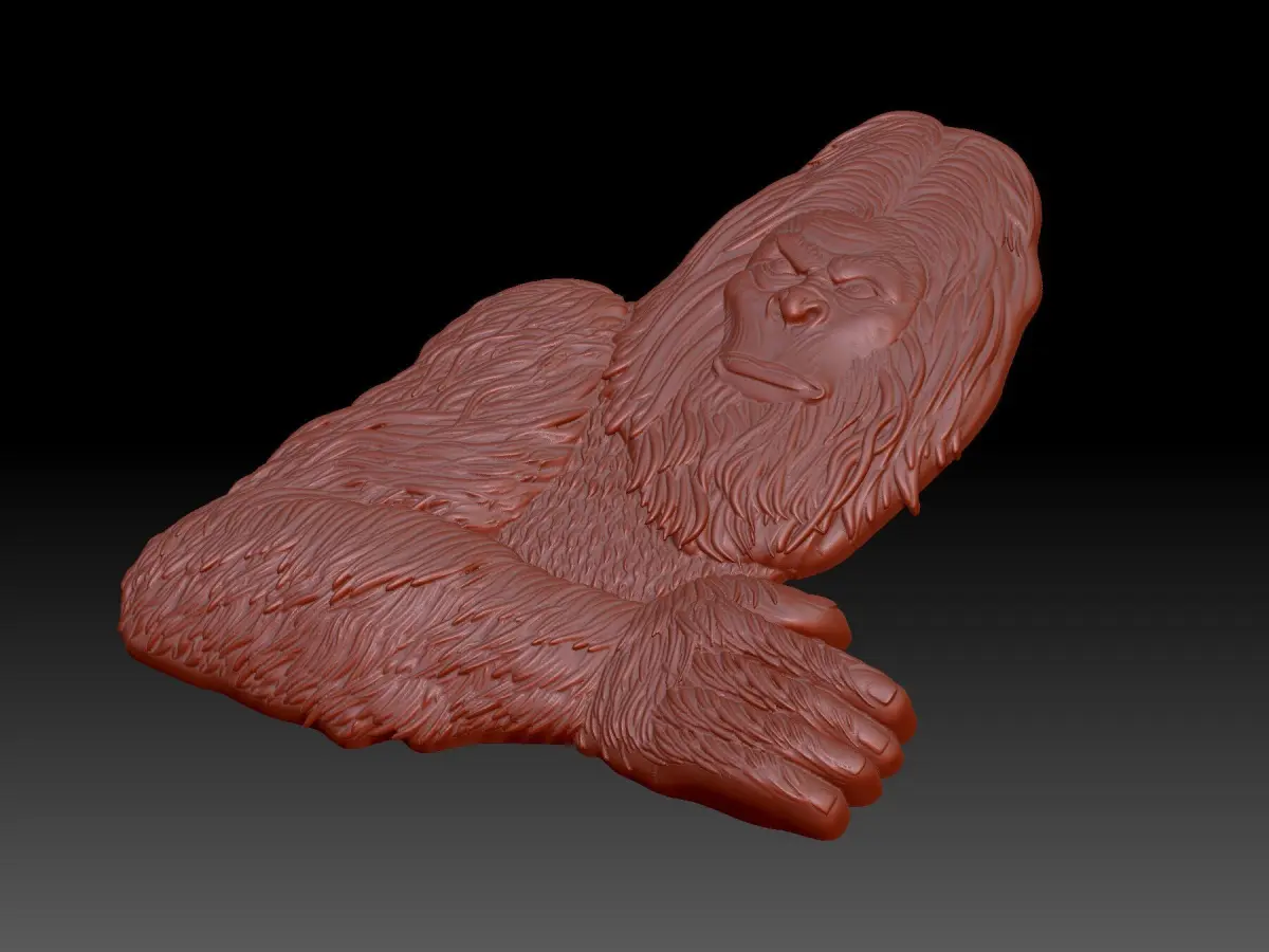 The 3D model of Bigfoot is an image of a large hairy monkey-like creature with a menacing and angry face. This project is ideal for both 3D printing and CNC machining.