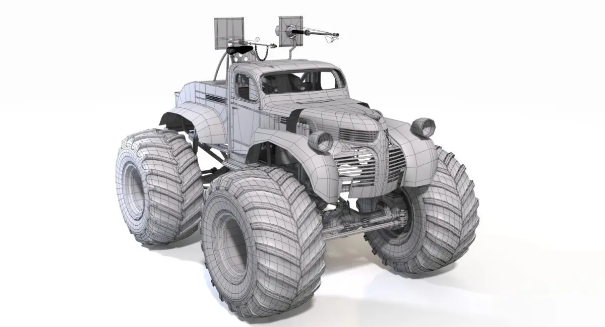 This is a subdivision-ready 3d model of Bigfoot monstertruck from Mad Max: fury road. The model is detailed enough for close-up renders. All files are named properly and logically. The model textured with 5 sets of PBR/nonPBR textures: 3 sets - 4k, 2 sets - 2k. The model's mesh mainly consists of quads. This product has spp (Substance painter) file included for easy texture customisation.