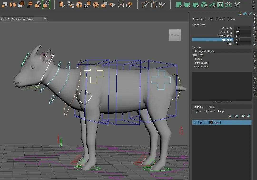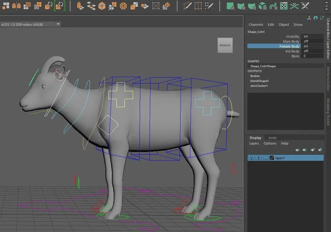 A simple model, fully rigged and UV mapped. It has a blenshapes to change it's gender and age. As a result, any animation that applies to one form can apply to all. This is a sudden switch because the horns make a slow transition difficult.