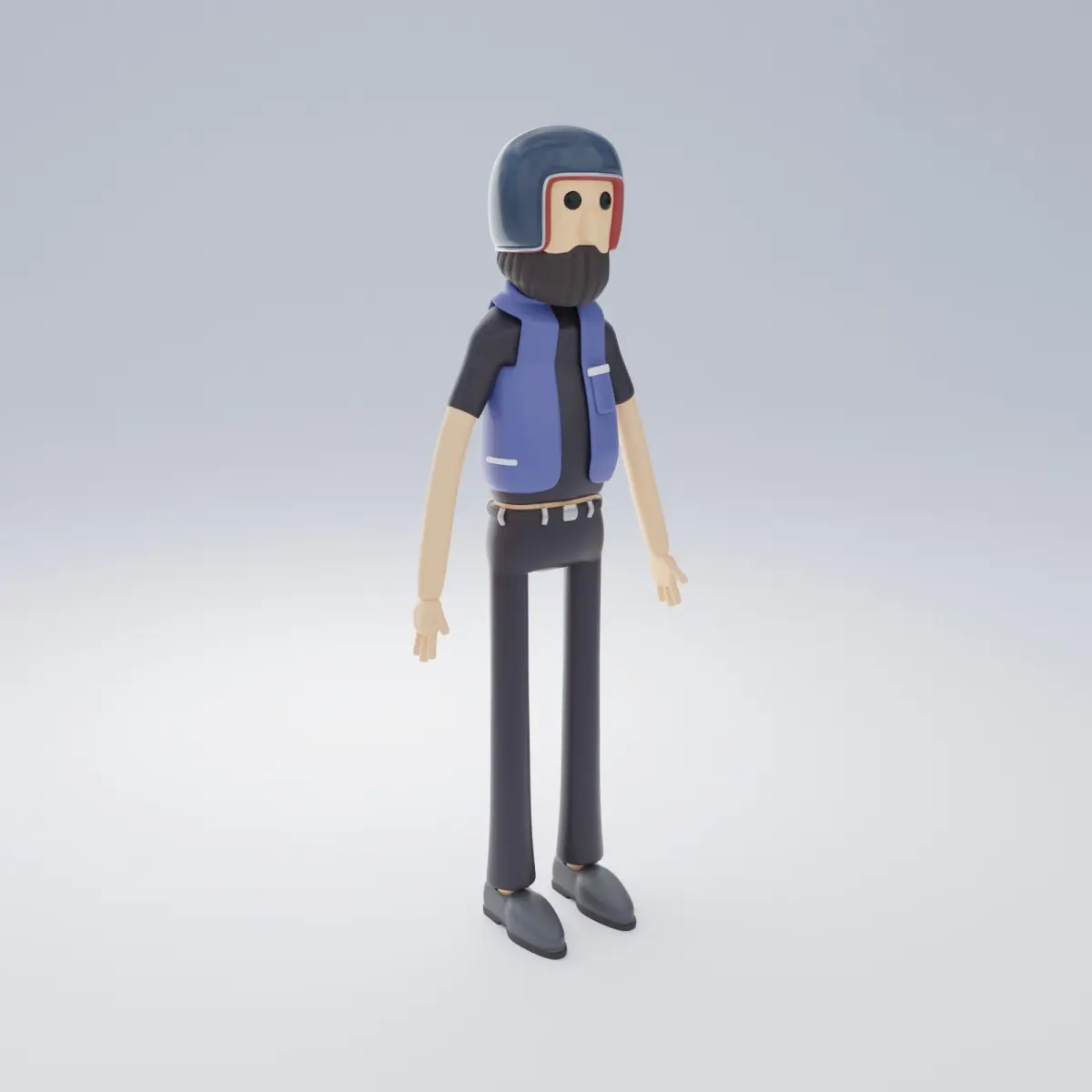 Biker character cartoon game made in blender 3D using the engine cycles when rendering objects, the model is made in two versions, the first is low poly and the second is high poly. Modifiers are also applied to change the number of polygons. A scene contains - scene, character, bike, lighting. The model is good for rendering. animation, cartoon, games.