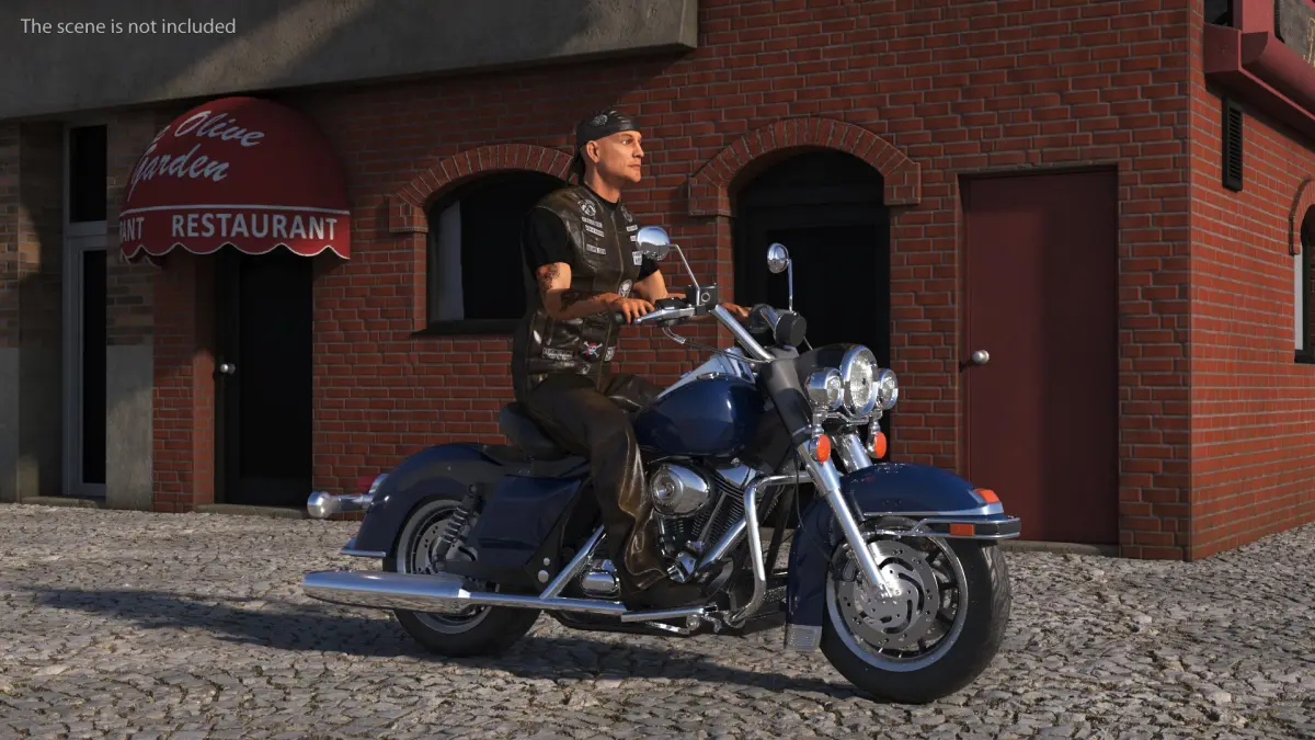 Biker on Classic Cruiser Motorcycle is a 3d model of a biker riding a classic cruiser motorcycle, showcasing a detailed and realistic representation of a rider and their bike, combining the elements of both the person and the motorcycle in a dynamic pose.