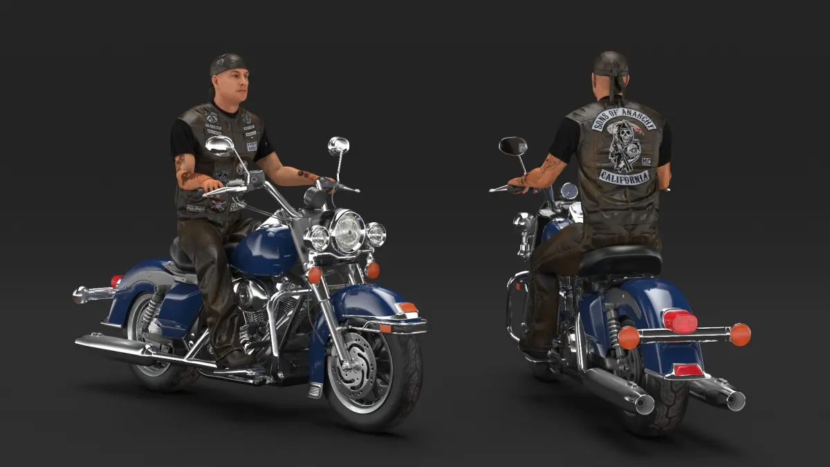 Biker on Classic Cruiser Motorcycle is a high quality, photo real 3d model that will enhance detail and realism to any of your rendering projects. The model has a fully textured, detailed design that allows for close-up renders, and was originally modeled in 3ds Max 2020 and rendered with V-Ray. Renders have no postprocessing!