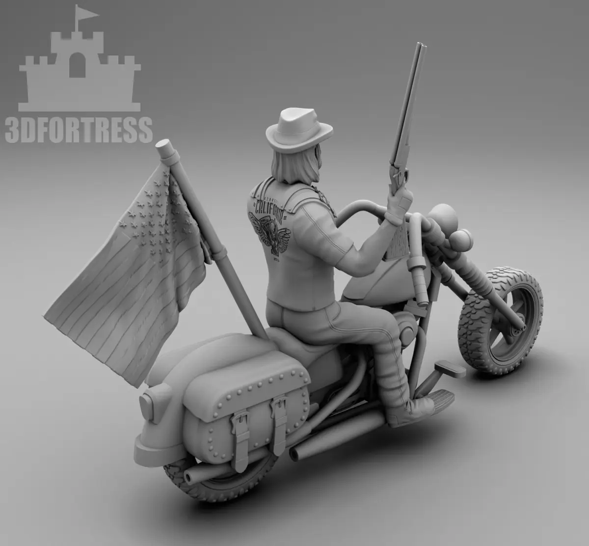 Biker with a flag 3D print model