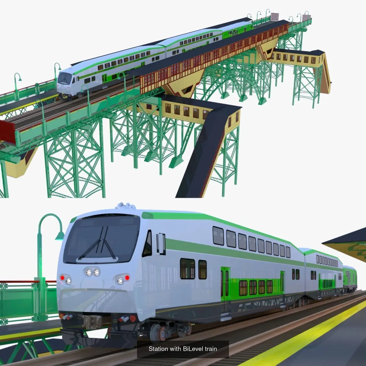 These are 3D models of stations with Bombardier BiLevel wagons with locomotive Siemens SC-44.