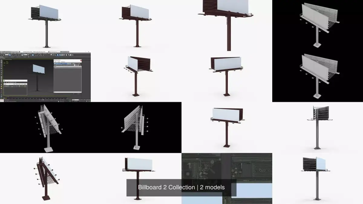 This Billboard 2 Collection is a high quality, photo real collection that will enhance detail and realism to any of your rendering projects. The models has a fully textured, detailed design that allows for close-up renders, and was originally modeled in 3ds Max 2014 and rendered with V-Ray. Signature image scene doesn''t included. All models in this collection lays in separate scenes