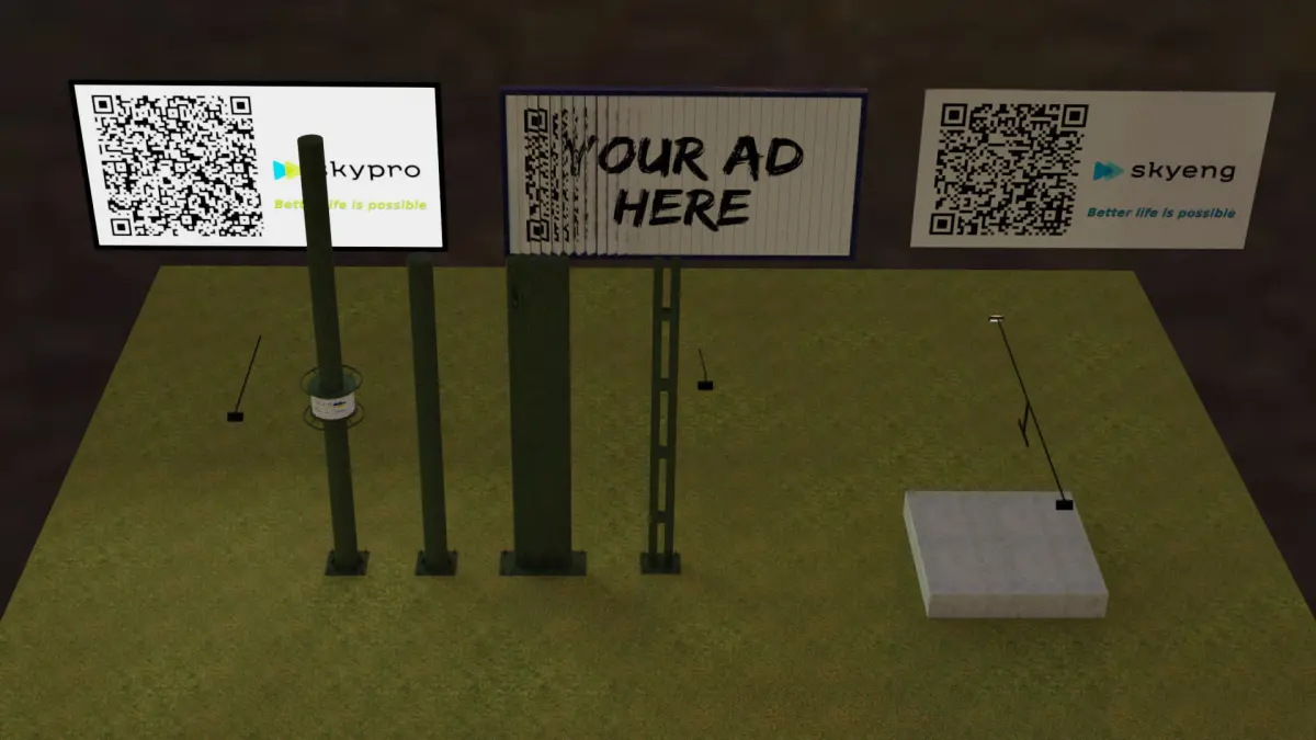 Rotative billboards are animated (BLEND file) so you can put there 3 ads at once.