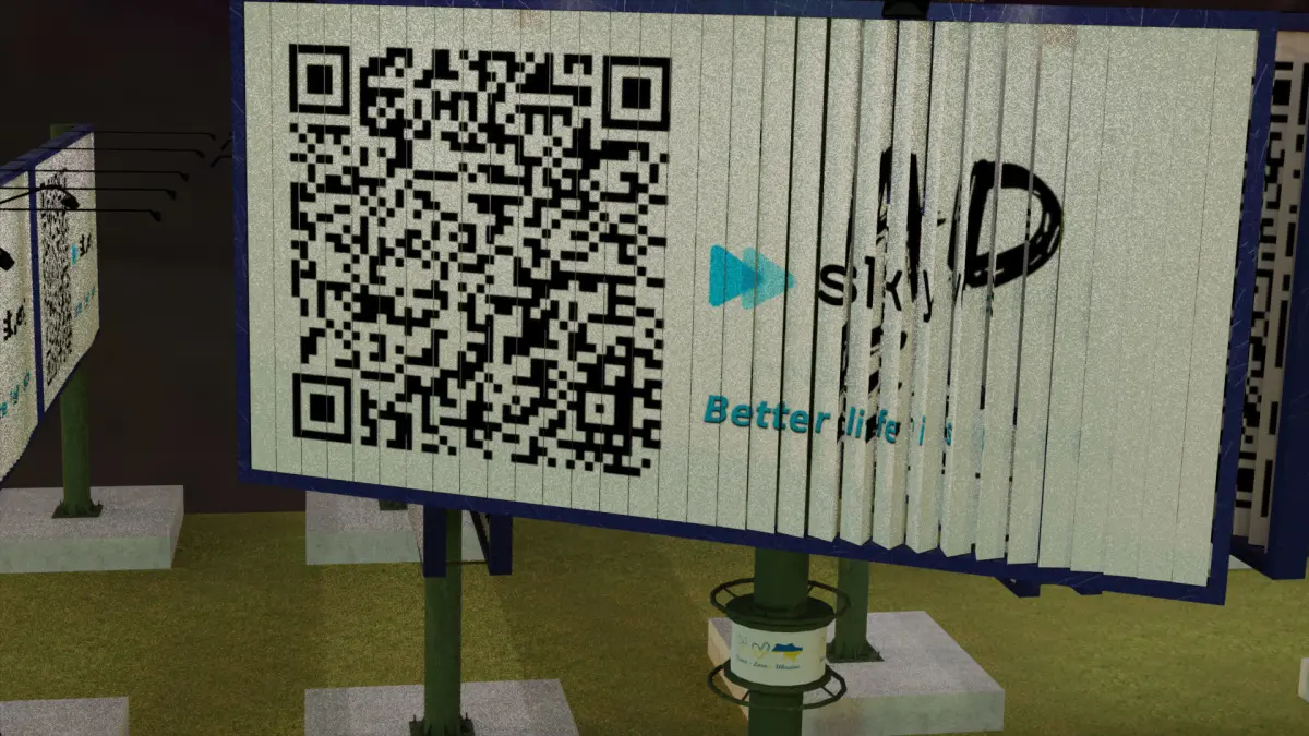 2-d ground with modules (different boards, lights, pillars) so you can construct your own billboard.