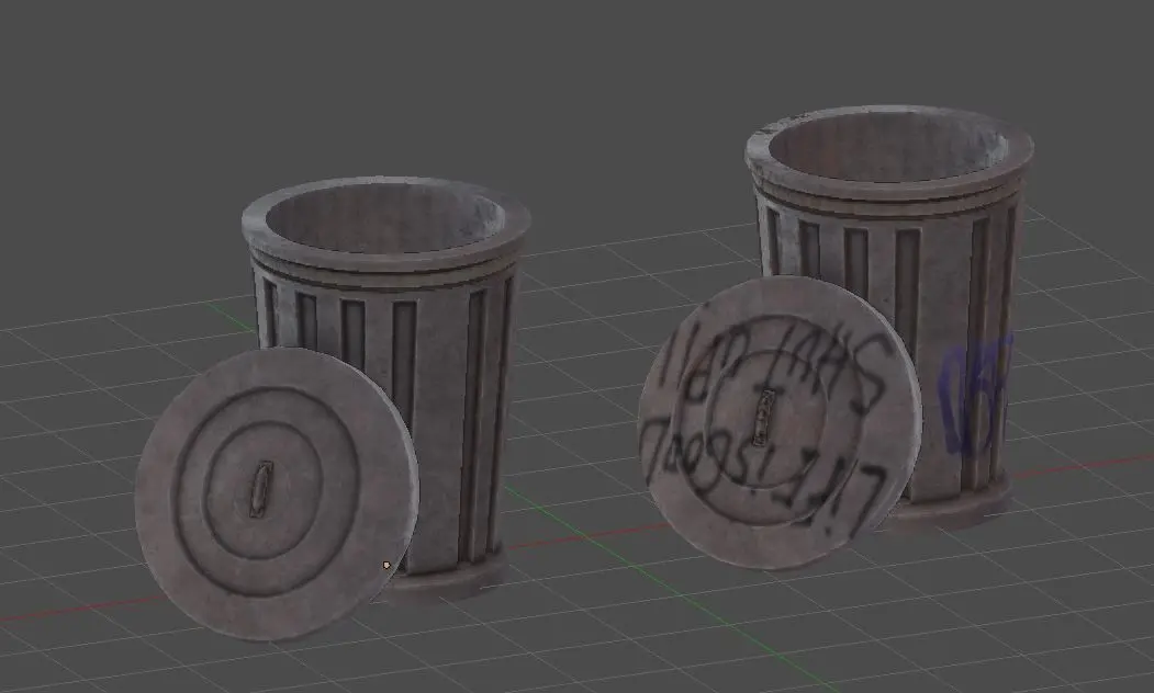 two containers in metal , with graffiti and without it. Modeled in Blender with differents formats. Textures in good quality. Good topology always in quads. And are ready for use a subdivision modifier.Collection of two urban metal garbage cans, with removable lid that can be used as an open or closed garbage can