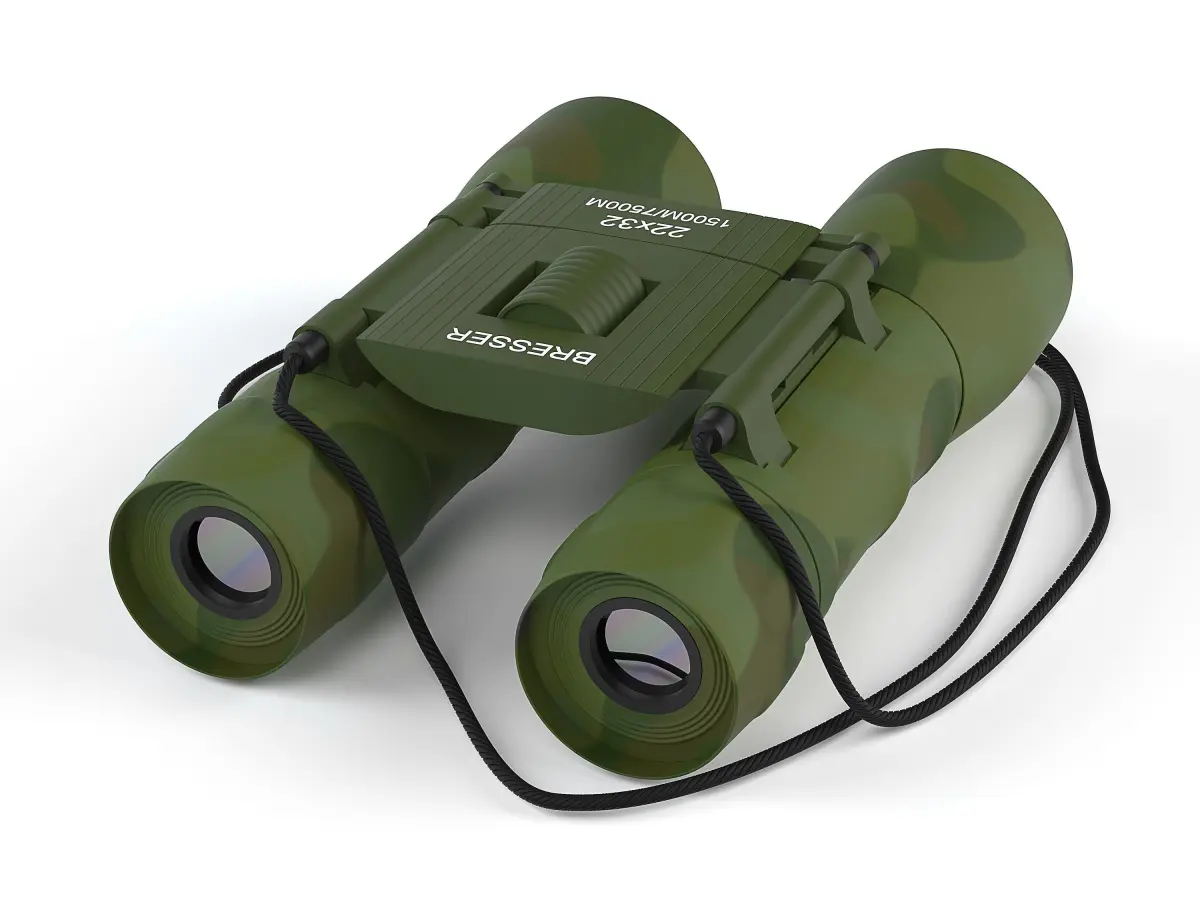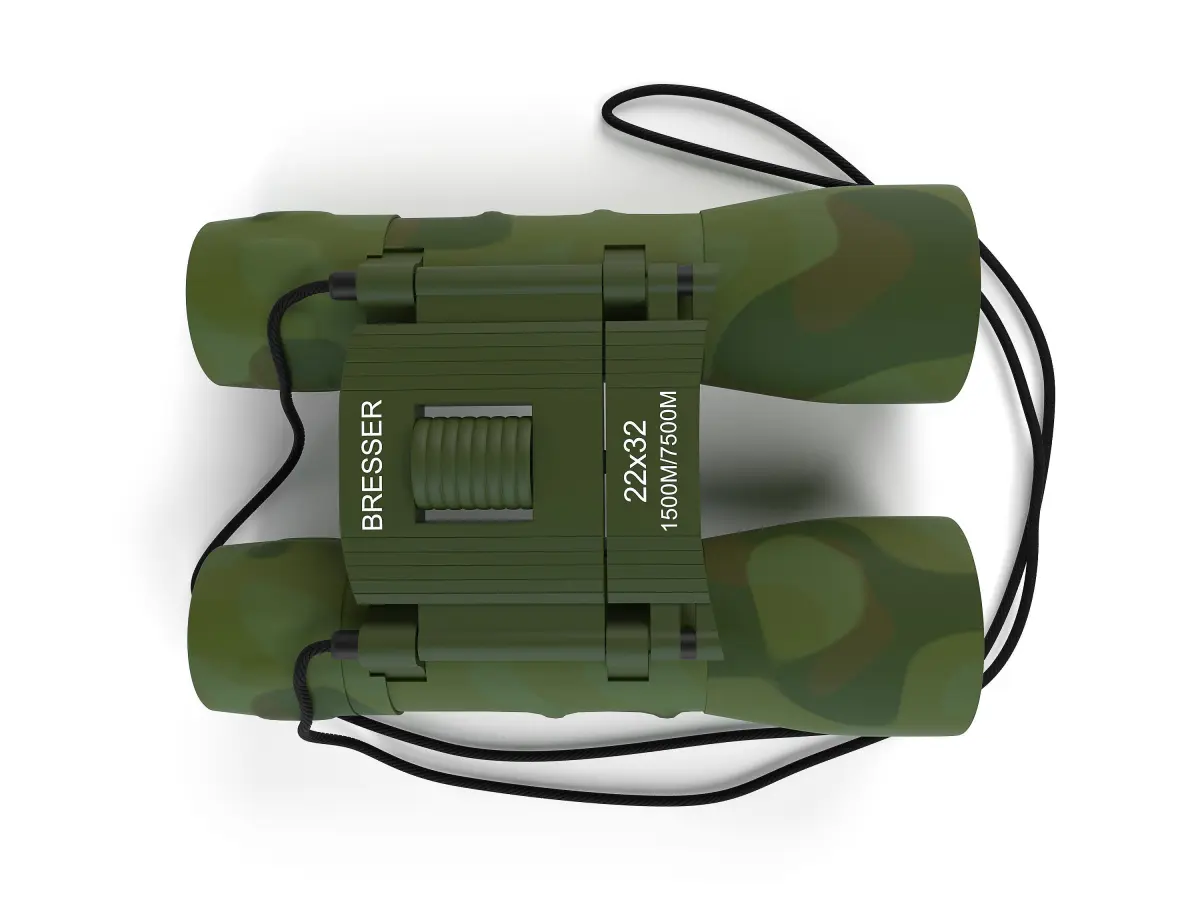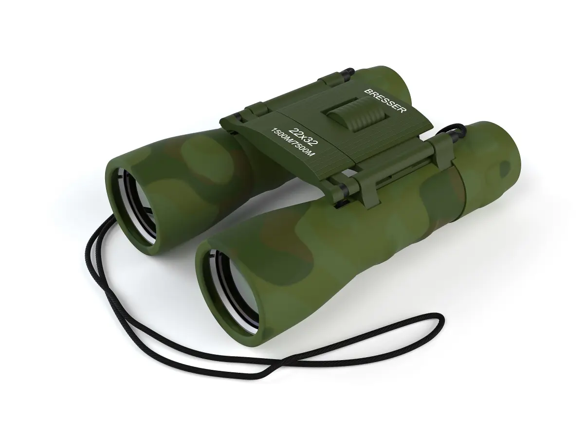 Binoculars 22/32 in a green camouflage uniform. Procedural textures.