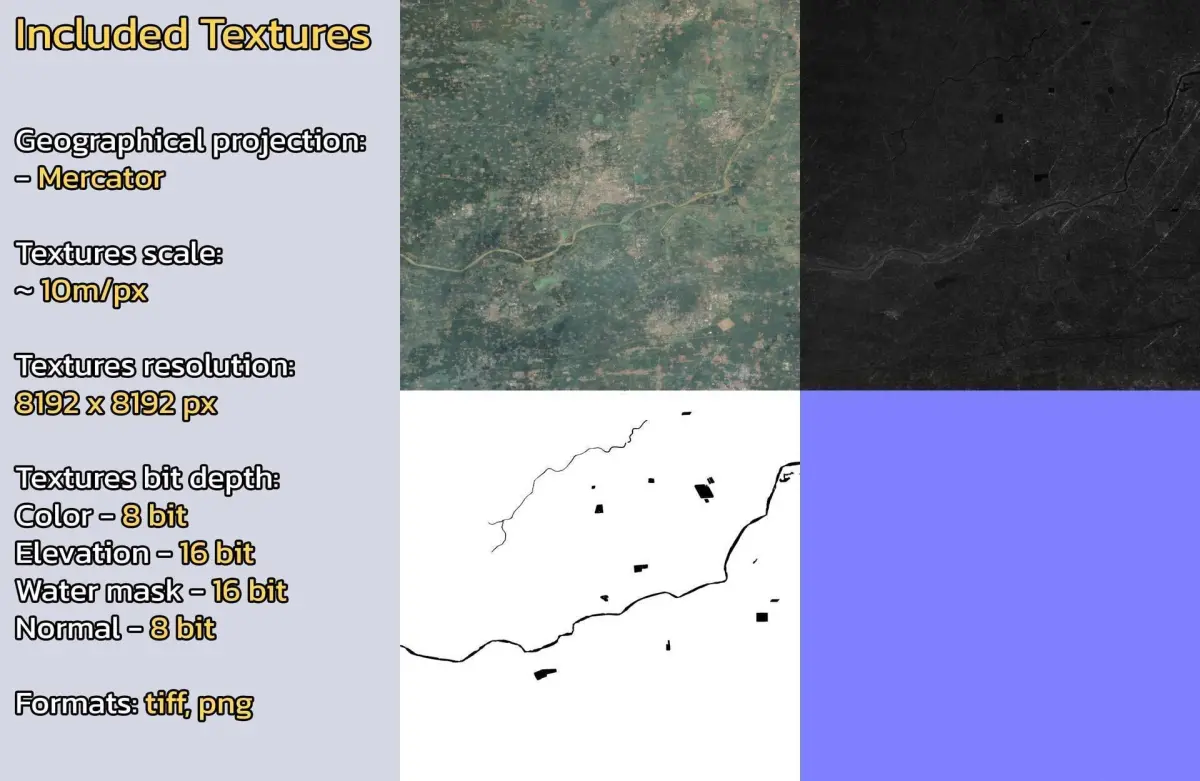 - Textures resolution: ~10m/px