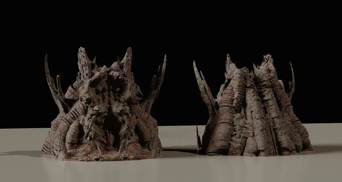 The model contains no UV's this was textured with a cube projection in blender with a basic material from Megascans - Hawaiian Lava Stone Ripple. The red components of the texture were made in Blender following this tutorial - https://www.youtube.com/watch?v=gUS0P6l3d2s