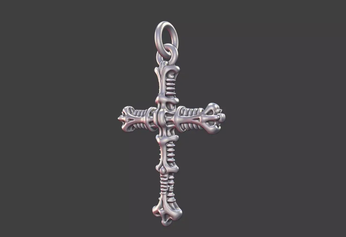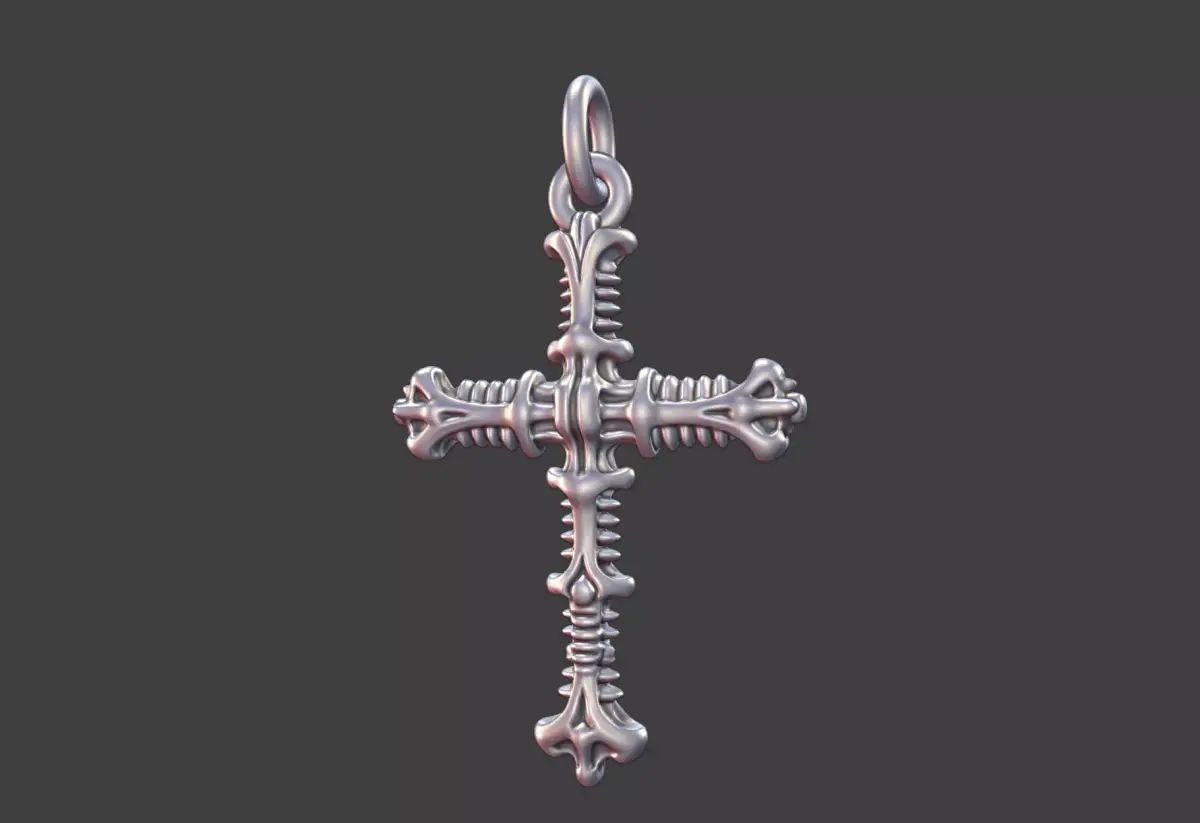 This bio-organic Giger-inspired cross pendant merges dark sci-fi aesthetics with intricate, flowing forms, creating a strikingly surreal piece of wearable art. Sculpted with organic curves, ridges, and biomechanical details, the pendant captures the essence of H.R. Giger’s iconic style while remaining practical for jewelry production.