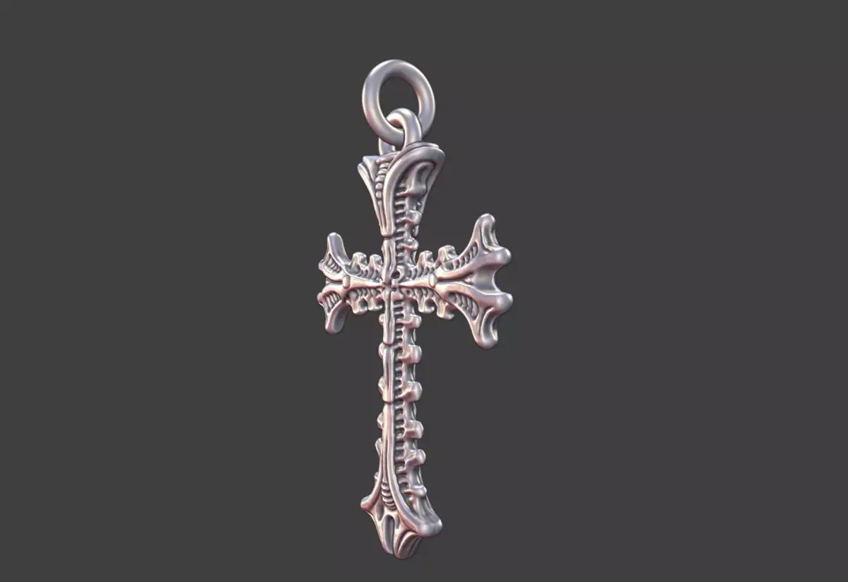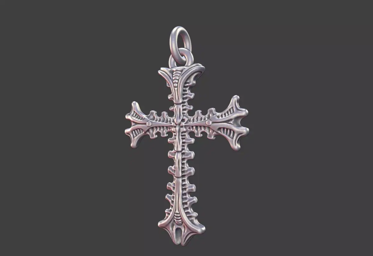 This bio-organic Giger-inspired cross pendant merges dark sci-fi aesthetics with intricate, flowing forms, creating a strikingly surreal piece of wearable art. Sculpted with organic curves, ridges, and biomechanical details, the pendant captures the essence of H.R. Giger’s iconic style while remaining practical for jewelry production.