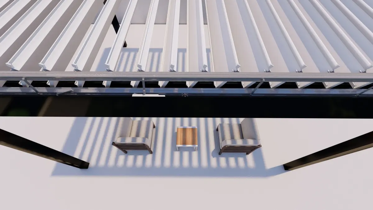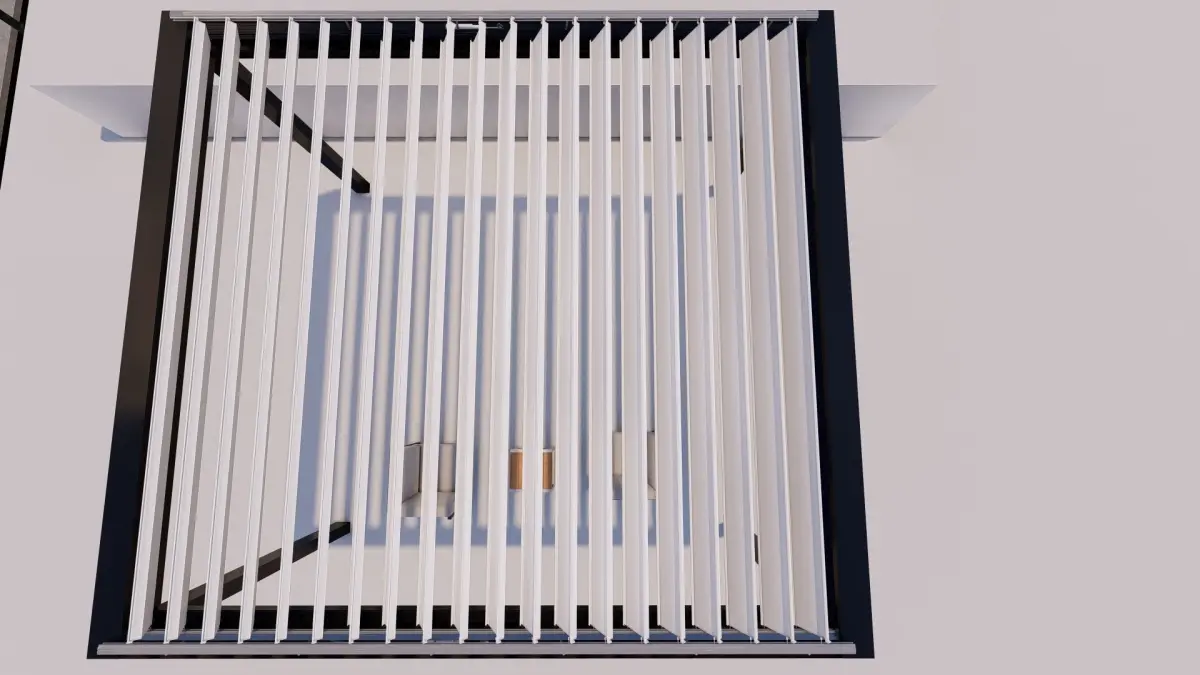 Bioclimatic pergola with motor.Texture assignment has been made. It can be improved.The rendering quality is low because my pc system is low. but modeling is detailed.It is also modeled on Autodesk 3ds max 2021. The renderings were taken in lumion 10.