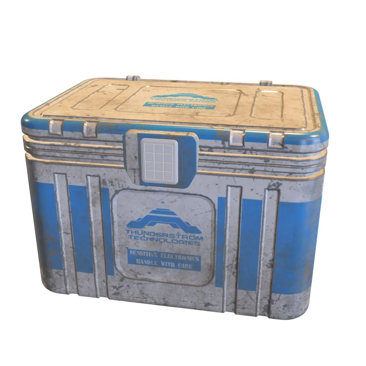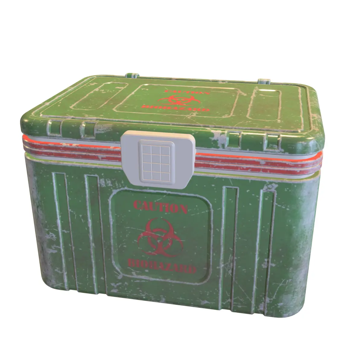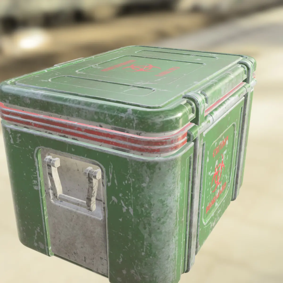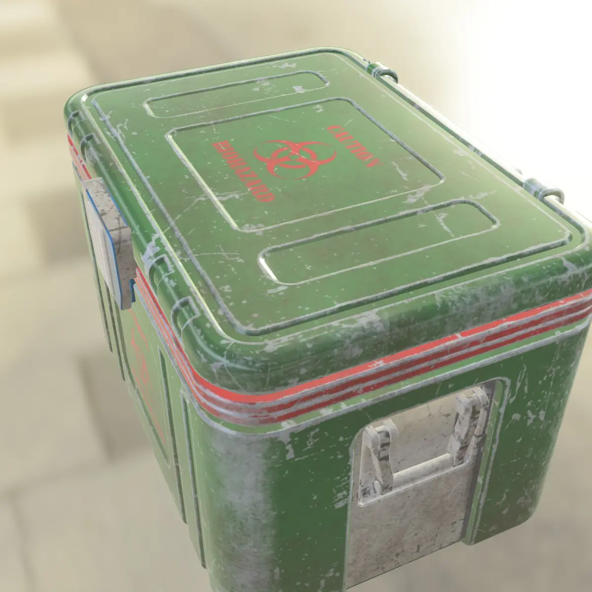 The Biohazard Storage Crate is a high-detail 3D model of a rugged, weathered contamination box featuring bold red biohazard warnings and a secure digital keypad lock. Designed for use as a sci-fi or post-apocalyptic item in inventory systems, loot drops, mission objectives, or environmental storytelling.