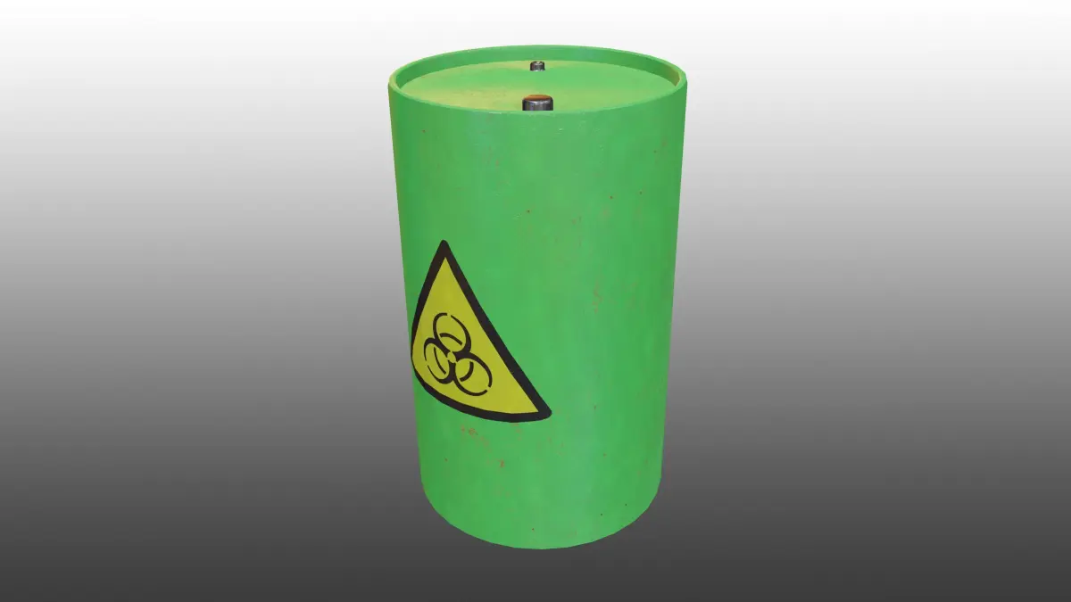 Low poly model of barrel with biohazard waste. Can be used to decorate some industry part/machines/buildings, also as an active element.