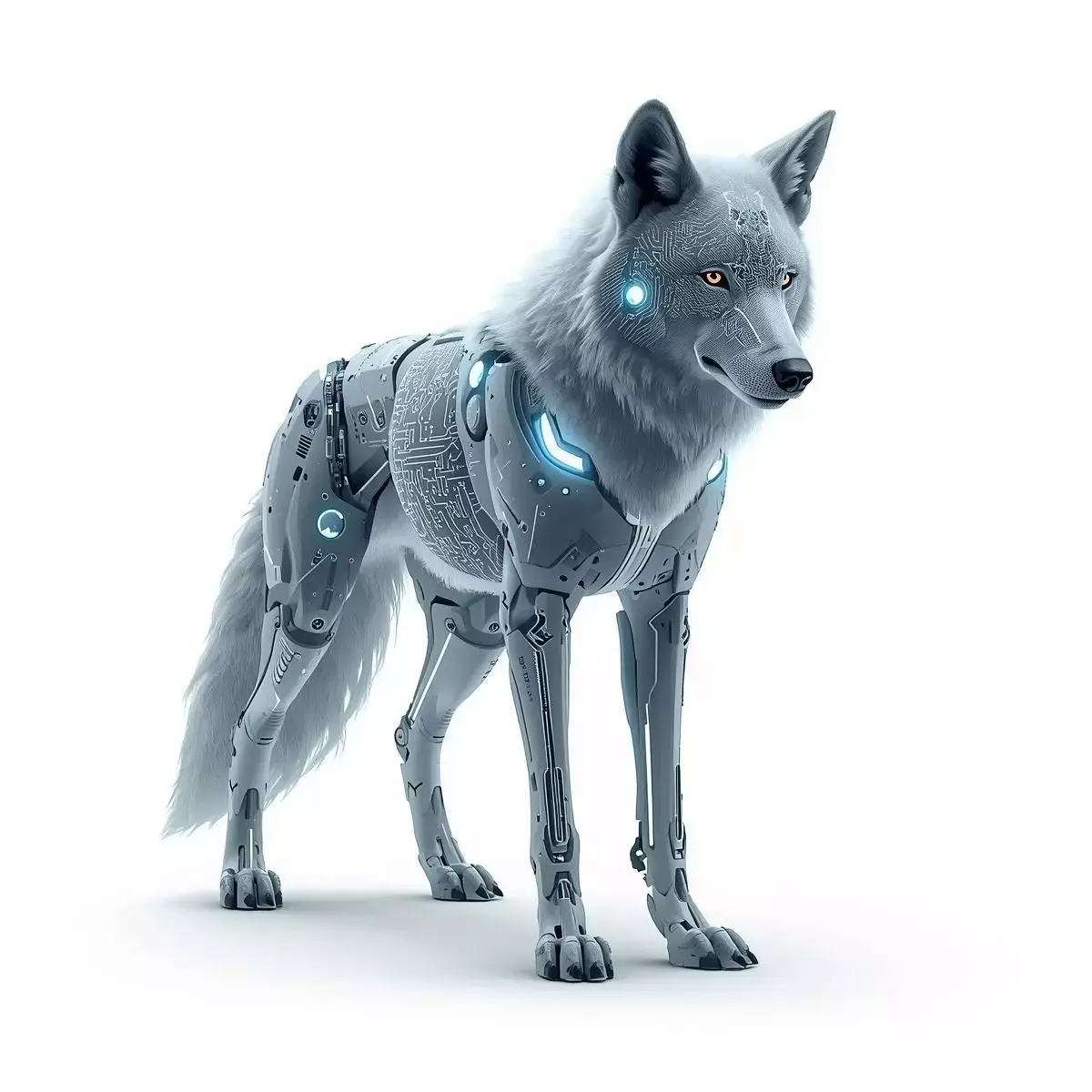 Key FeaturesDesign: Fusion of organic wolf features (fur) with advanced bionic/robotic structures.