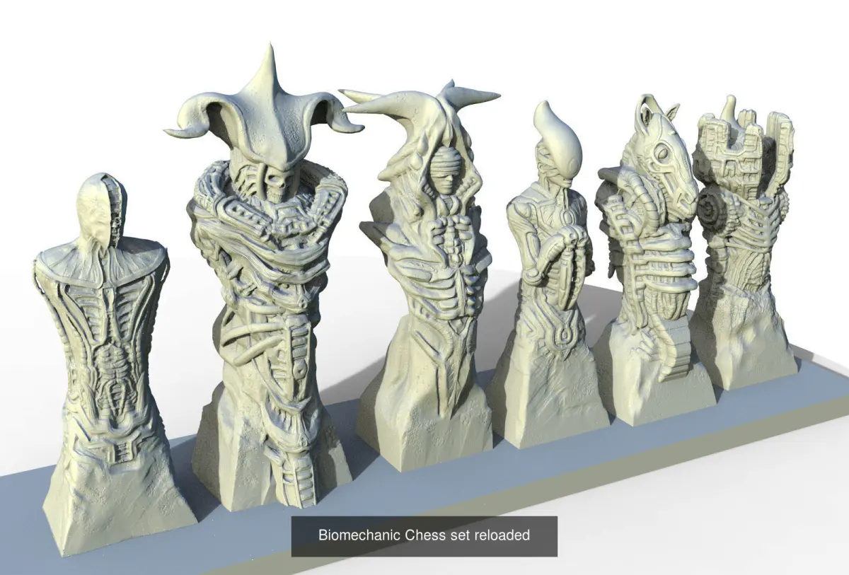 - The Collection contains : biomechanic ches set, biomechanic chess set reloaded , and a smal gigeresqe statue .