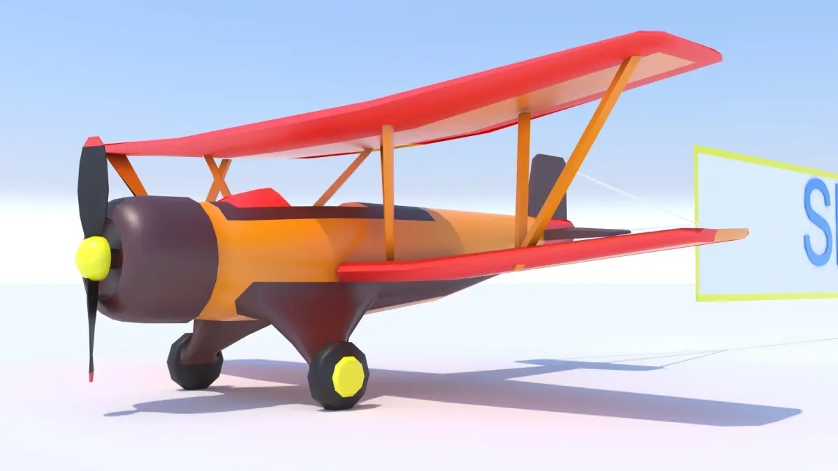 HomeCatalogBiplane with a poster Stylized Low Poly Low-poly 3D model