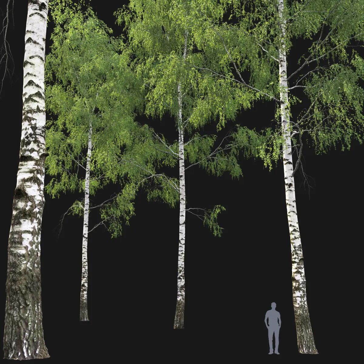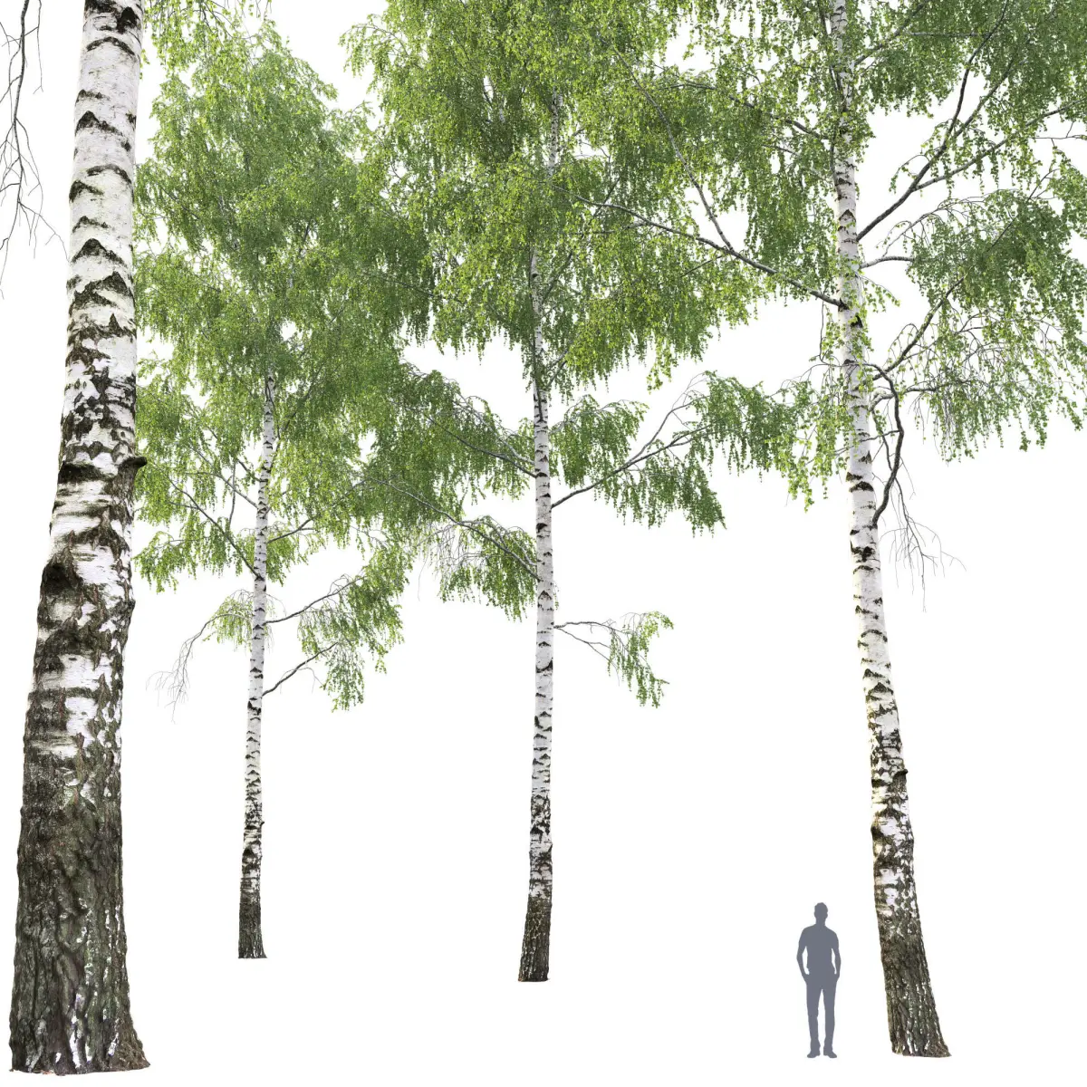 There is one tall birch in the scene, which is great for creating a forest, alley, park, grove, etc. (part fourth)