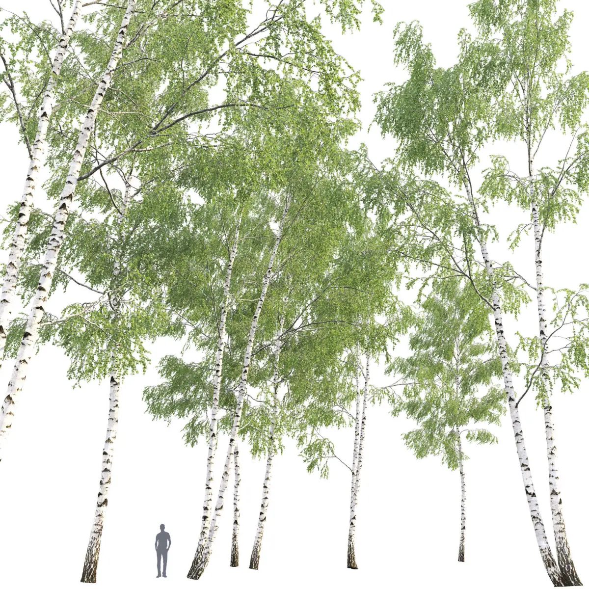 There are 2 tall birches in the scene, which are great for creating a forest, alley, park, grove, etc. (part nine)
