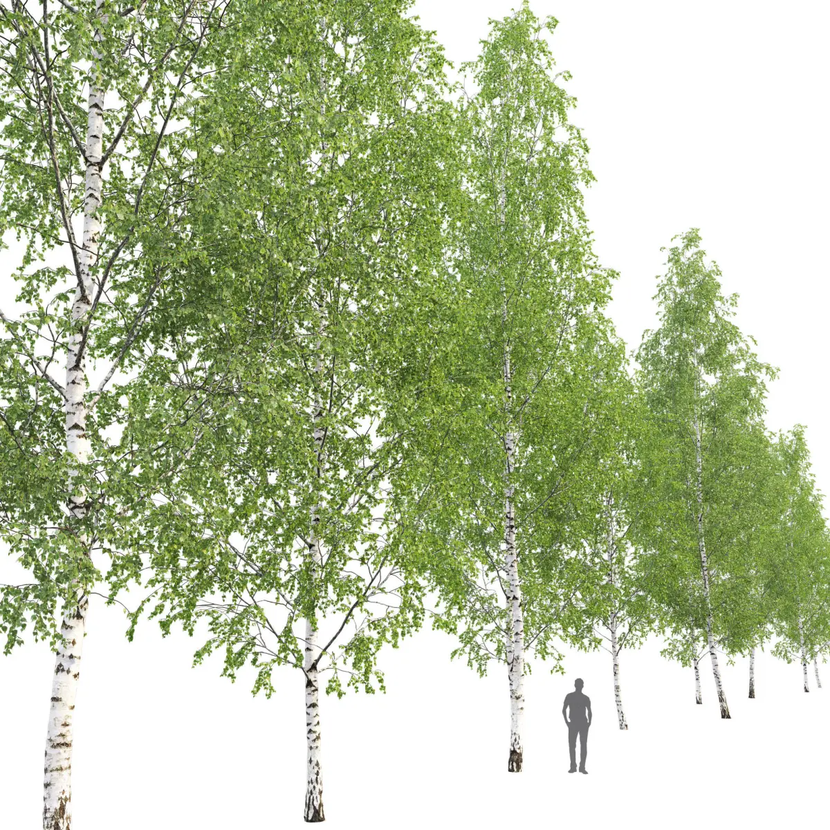 There are 3 birches in the scene, which are great for creating a forest, alley, park, grove, etc. (part 12)