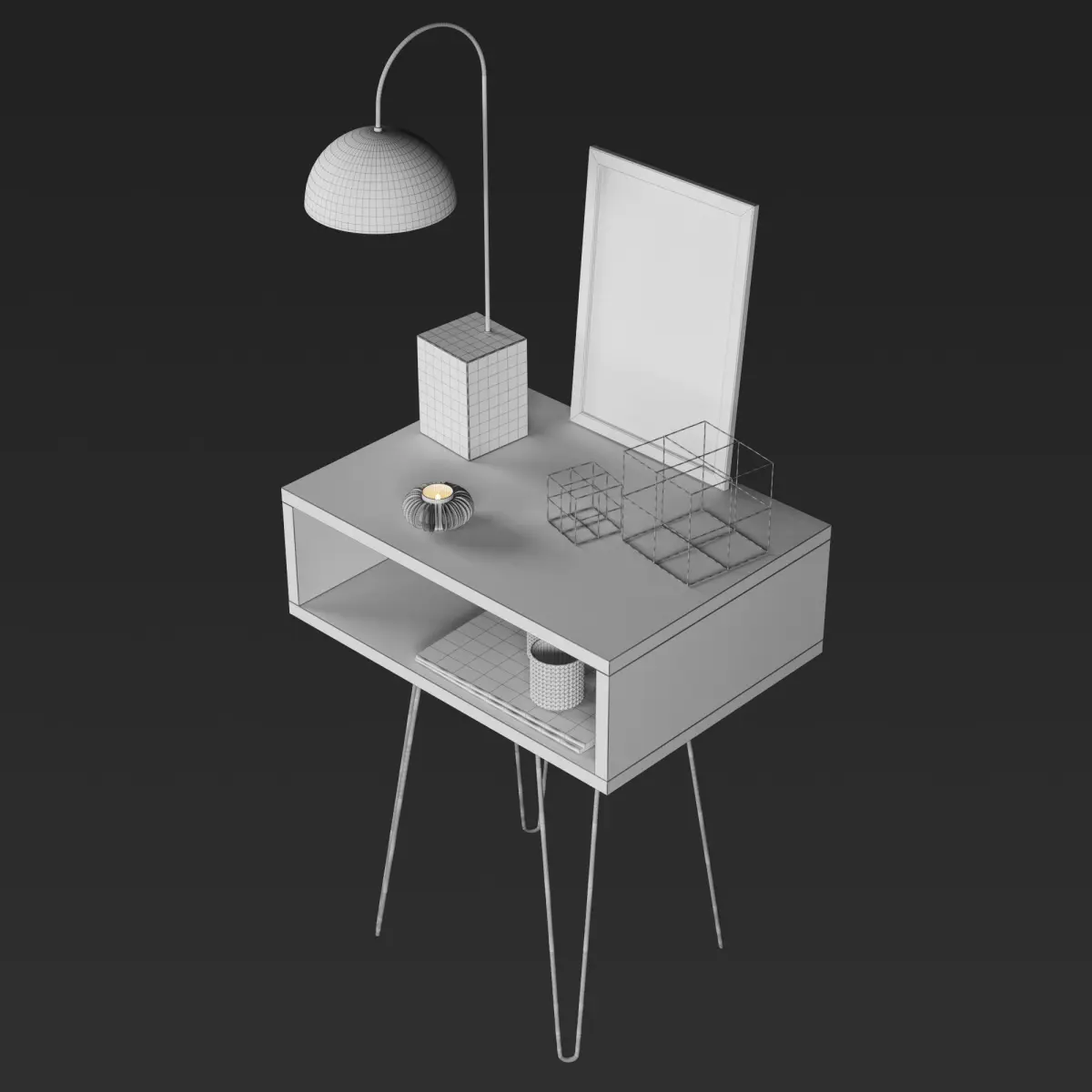 Archive included: materials (mat), textures, FBX, OBJ, 2014 max.Model was created in 3ds Max 2014. Shader for Corona - Renderer. DIMENSIONS: Nightstand without accessories: 56.93cm x 41.28cm x 70cmPreview: YesXForm: YesBox Trick: YesModel Parts: 11