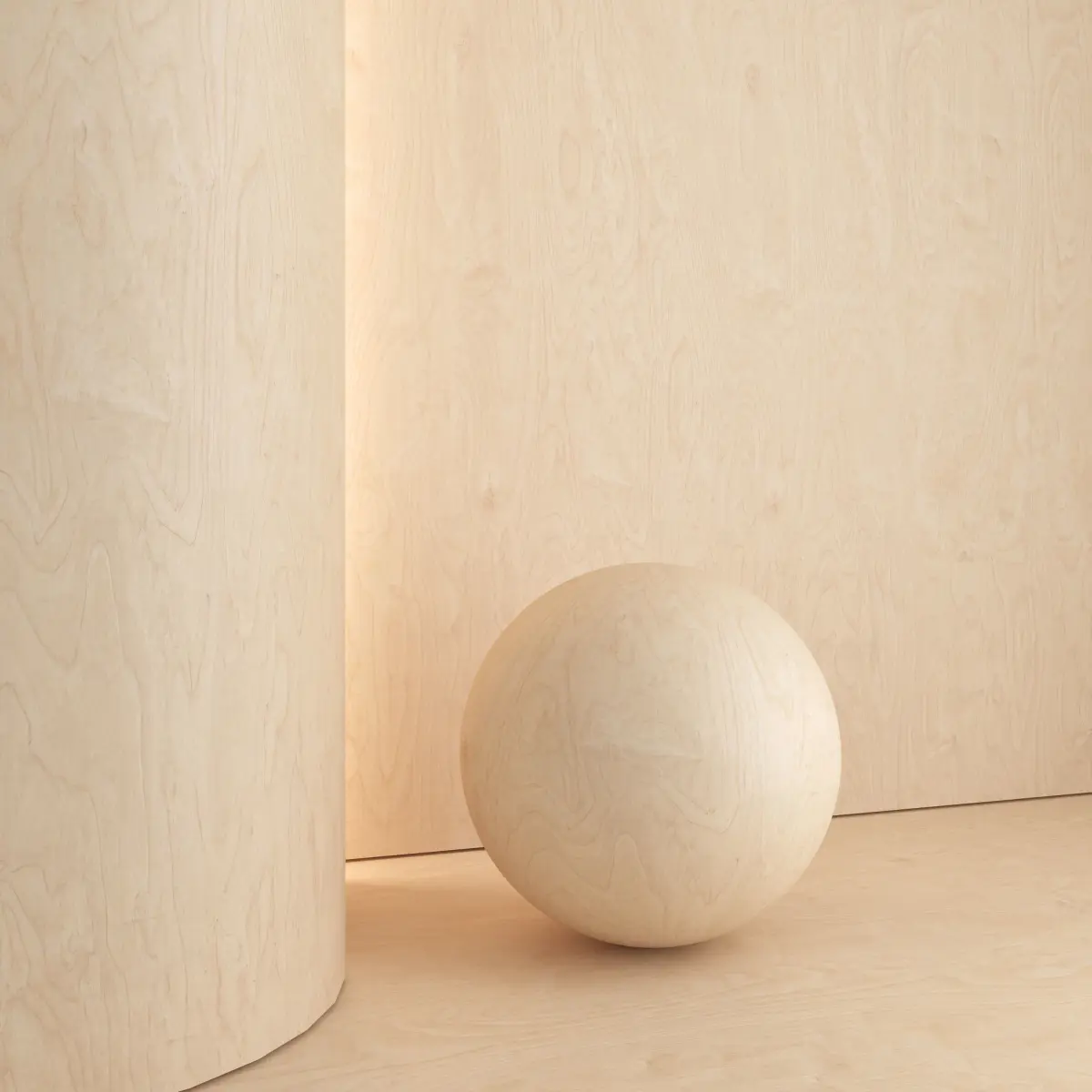 Birch plywood material in 4 colors.7 plywood panels with a size of H.2500x1250 mm and thicknesses: 5mm, 7mm, 10mm, 15mm, 20mm, 25mm, 30mm, 40mm.High quality material and textures. Detailed enough for close-up rendering.PBR textures. Resolution 16384x16384 pixels.
