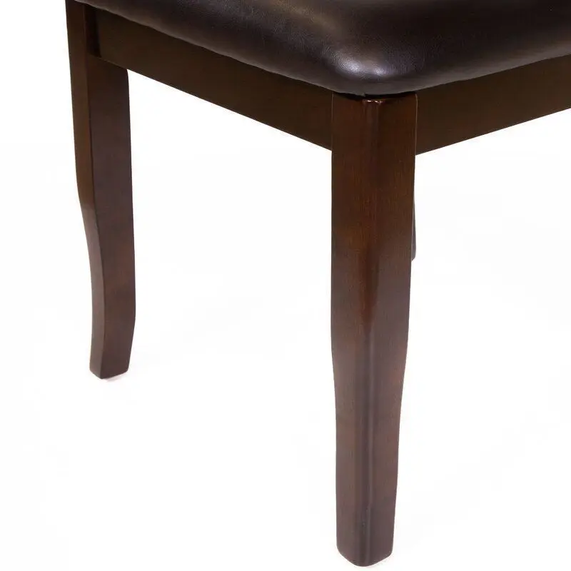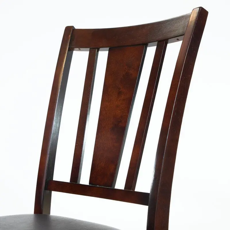 - Faux leather upholstery pairs with a slatted back to give this handsome side chair a look that elevates any space. Add it to the dining room to complement a rustic ensemble or use it to level out a factory-inspired aesthetic. Its understated look blends effortlessly into any aesthetic while its slatted back adds a breezy touch to your decor.