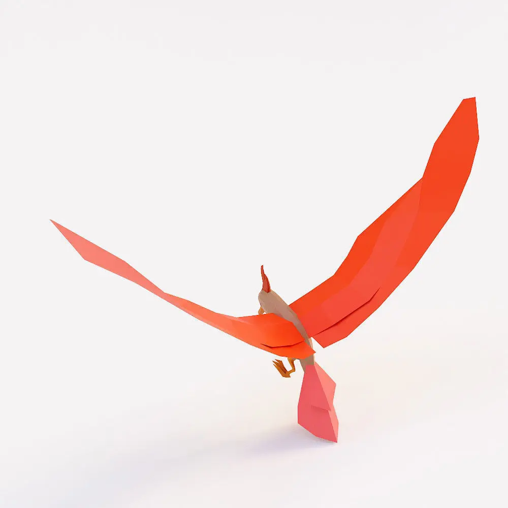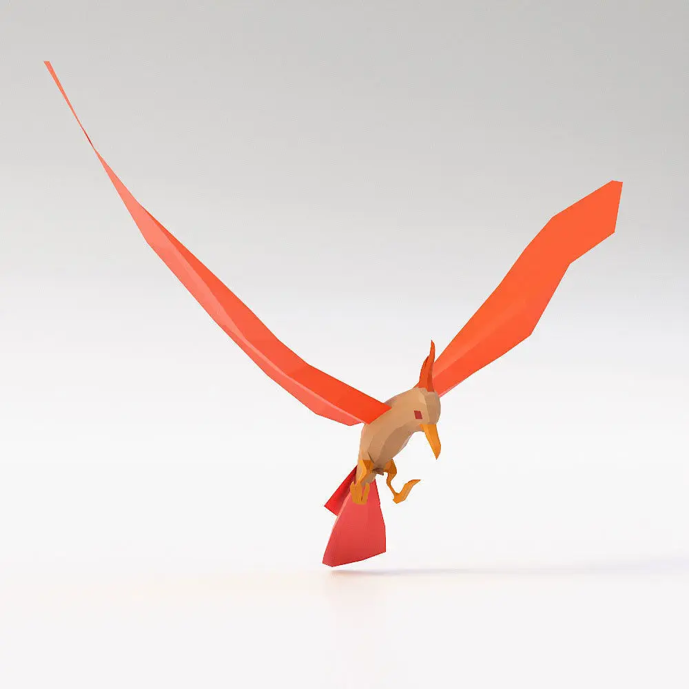 Bird 3d model origami flying in air Low-poly 3D model