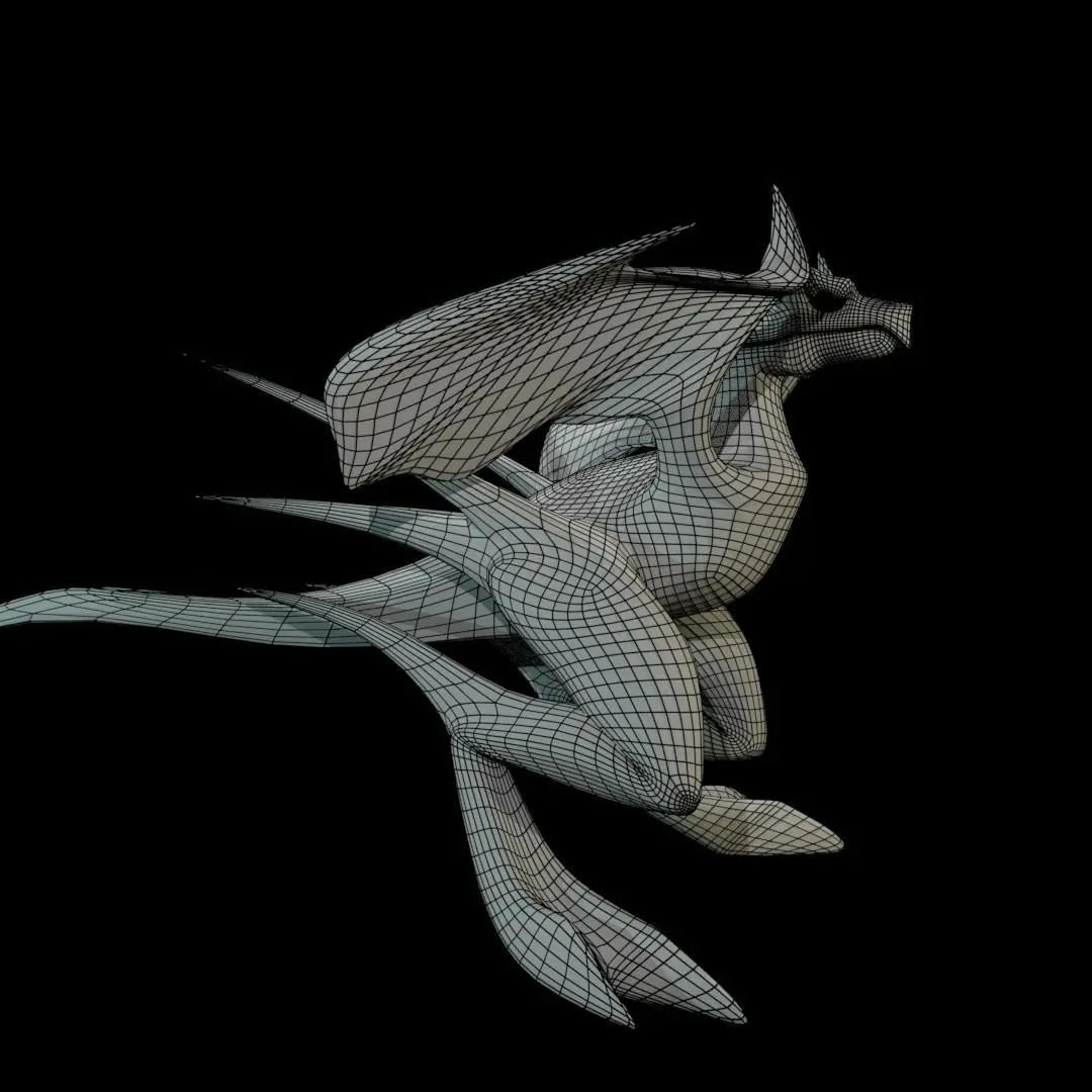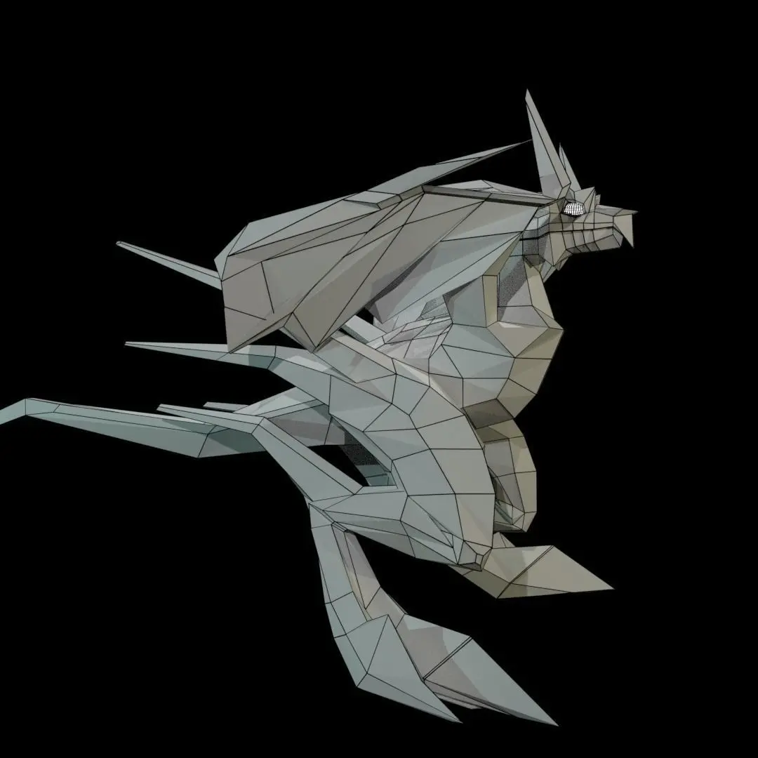 Low-poly dragon model with wings. Ready for games, animations, and VR. Thumbnails are rendered with a subdivision level 2, wireframes are rendered without any subdivision.