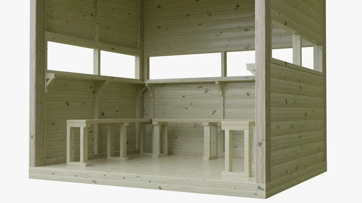 3D model of a bird hide, a shelter that is used to observe wildlife.Created in Blender 3.6.0.The whole model is textured, with fully unwrapped UVs. 8192x8192 PNG texture maps are provided (color, roughness, normal, specular, metallic).The model consists of 34353 faces and 37793 vertices. Please notice that model does not include any backgrounds, lights, or cameras used in preview images.Several exchange formats including .blend, .OBJ, .fbx, .DAE, .stl, .abc