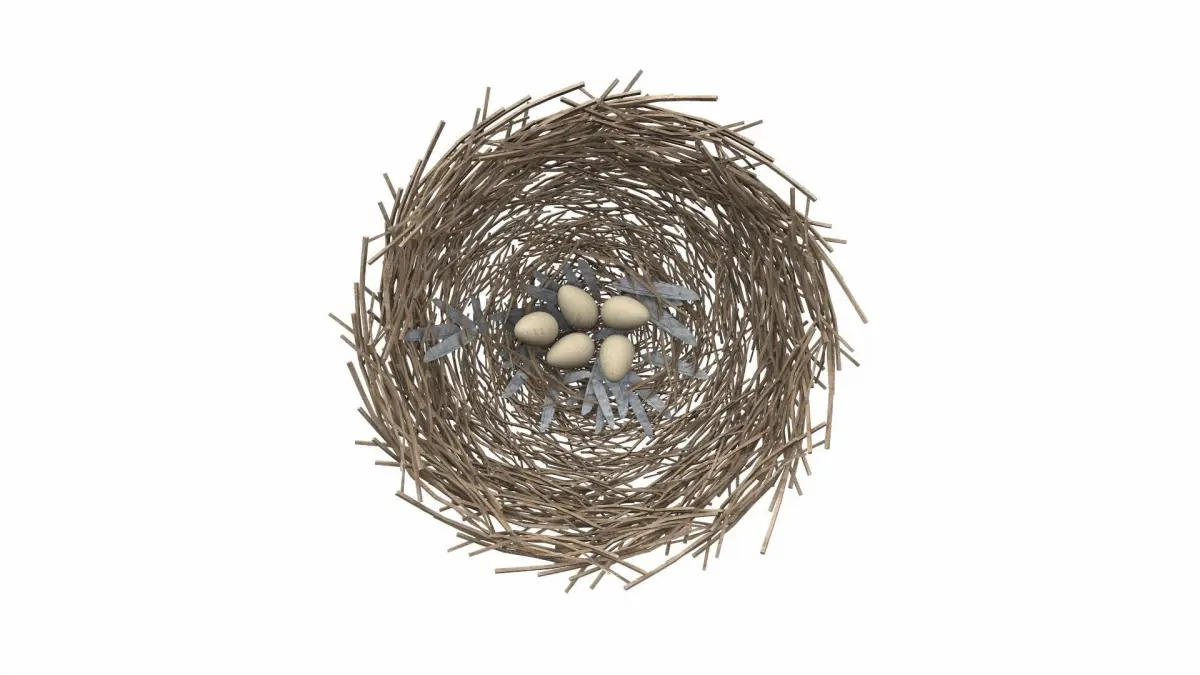 Model Bird nest v2 - along with eggs and feathers, which is suitable for interior visualization in combination with other elements.