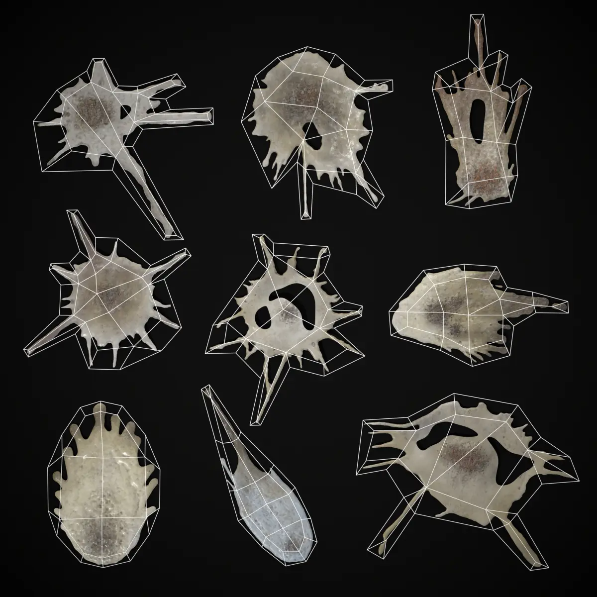 Bird Poop Pack - 9 High Detail 3D Models, Game Ready - Optimized - 3D Files Include FBX and OBJ. Includes PBR Texture in 4096 x 4096. All Models share one Material. Maps include : Basecolor, Normal, Roughness, Height, and Metallic. All Preview renders were done Marmoset Toolbag 5. Scaled to real world scale. Customer Service Guaranteed. From the Creators at Get Dead Entertainment. Please like and Rate! Follow us on FaceBook and Instagram to keep updated on all our newest models. Model can be used for any purpose except resale or redistribution of the asset if not used in a game, commercial or media project.